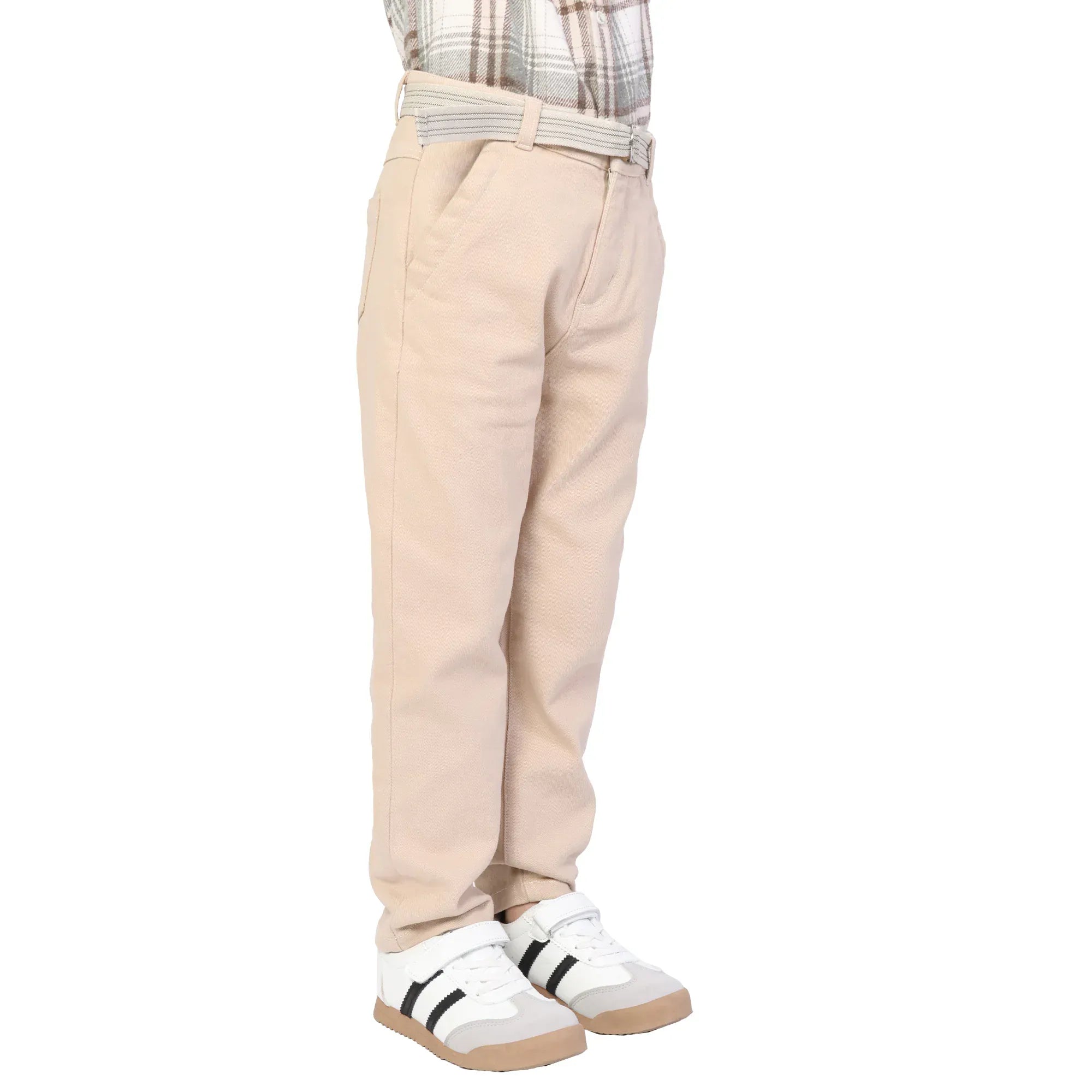 - الخامة قماش قطني تويل مطاطي: نسيج متين بخطوط مائلة مع لمسة من المرونة لراحة وحركة أسهل.