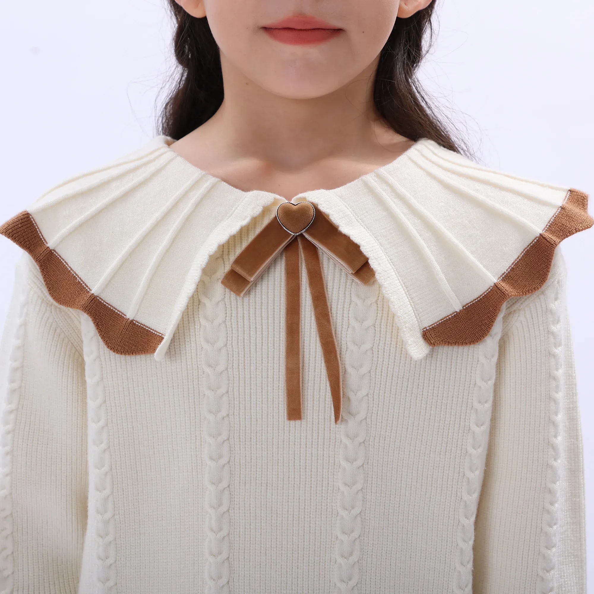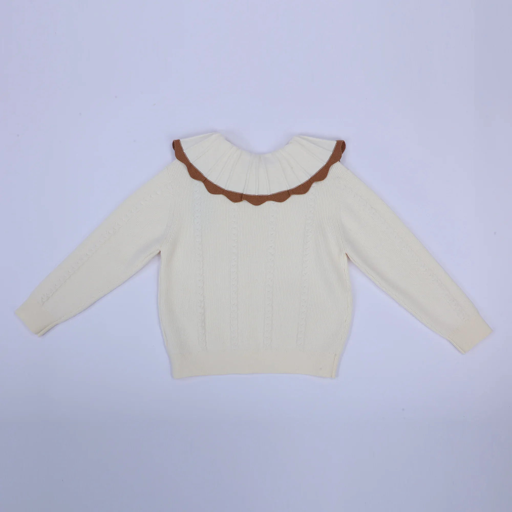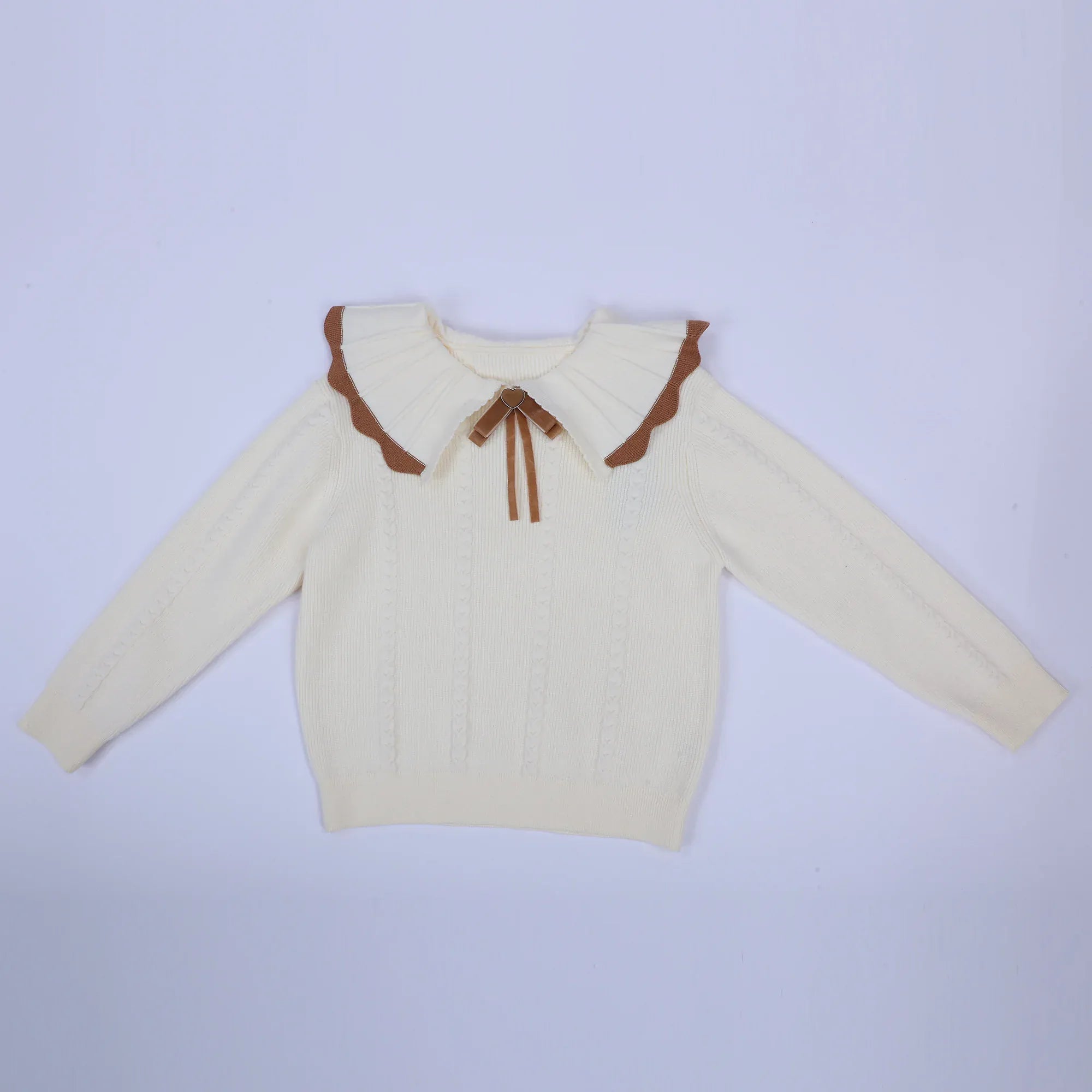 سويتر كلاسيك جاكار بياقة كبيرة كشكش بفيونكة للبنات