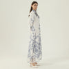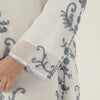 - الخامة: تول مطرز من الكتان المقلد، مبطن بنسيج عادي مطاطي رباعي الاتجاهات