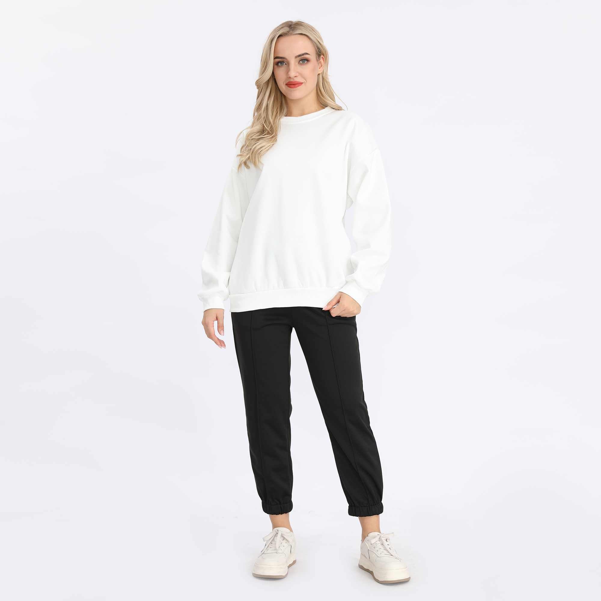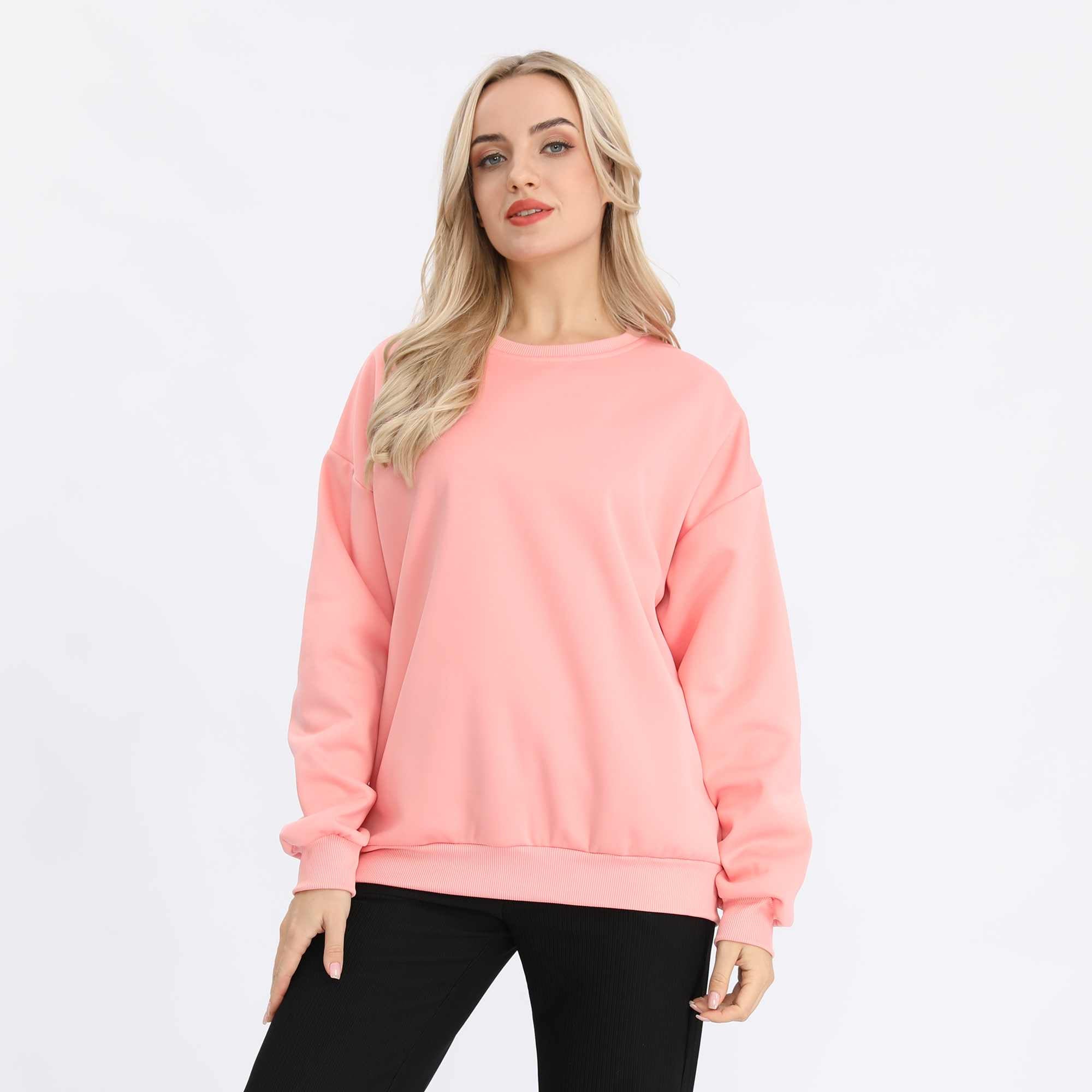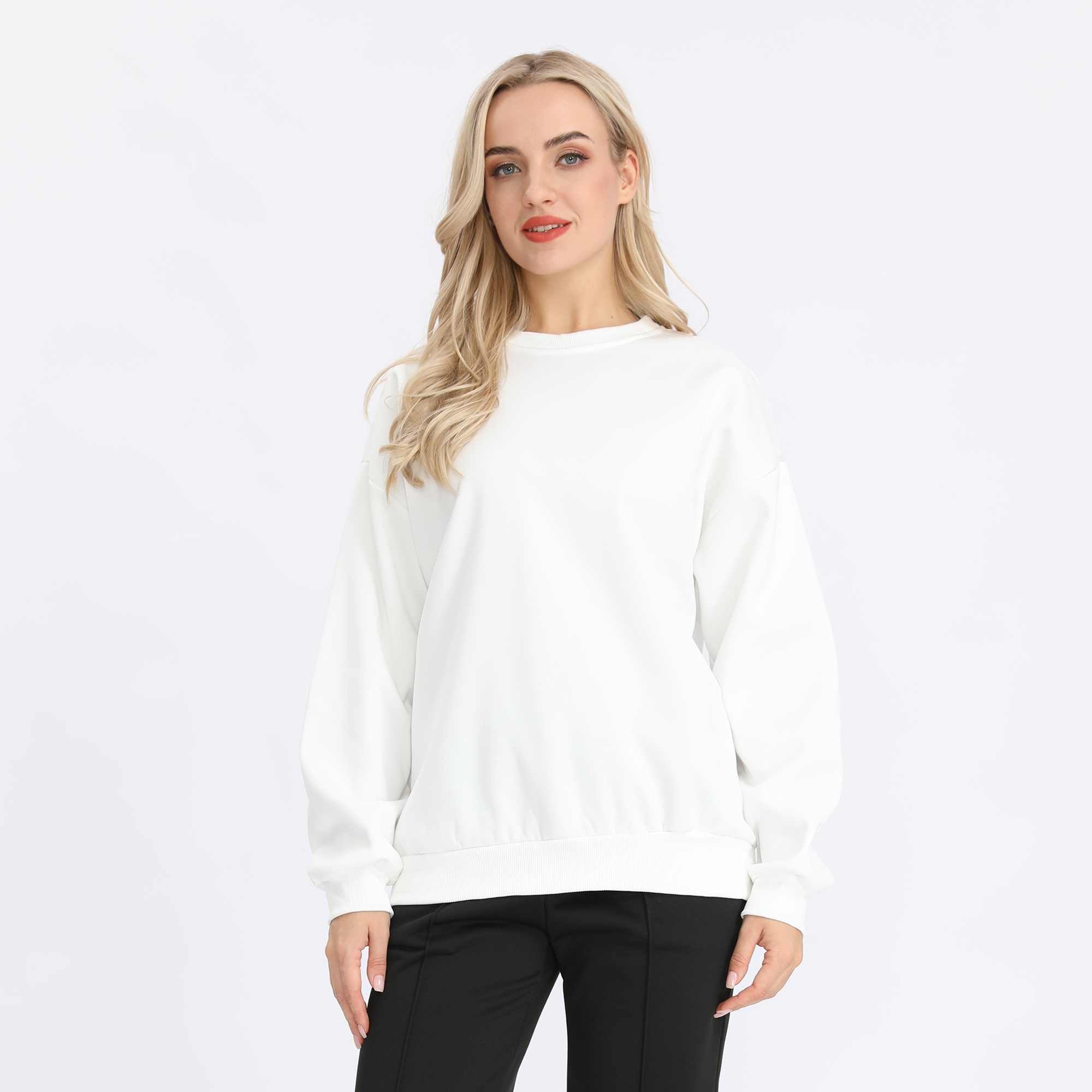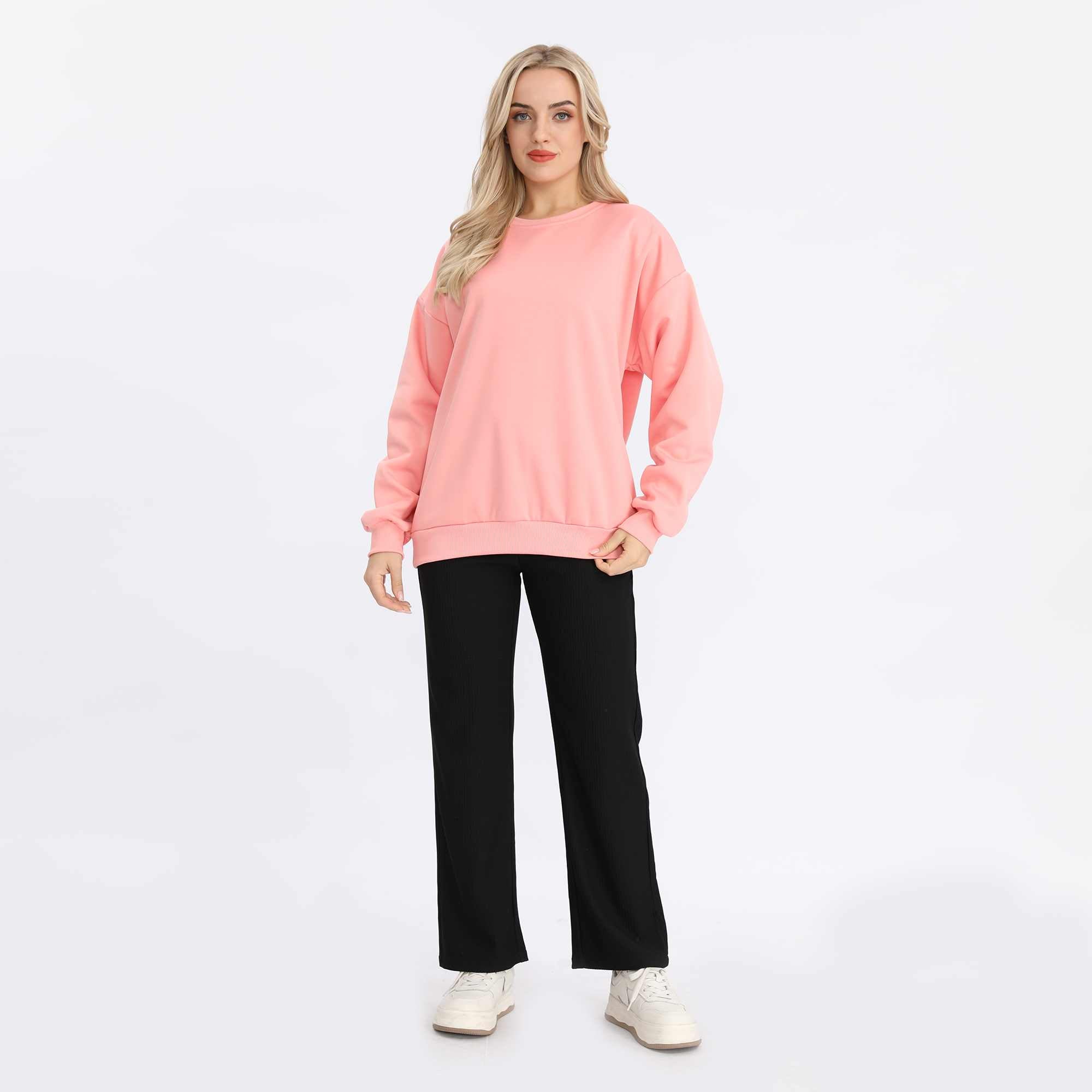 استمتعي بالدفء والأناقة مع البلوفر السادة الأساسي للنساء. يتميز بقصة منسدلة وياقة دائرية تمنحك الراحة المطلقة لإطلالة يومية بسيطة وأنيقة. مصنوع من قماش قطني ناعم من نوع فرينش تيري مبطن بالفليس ليجمع بين النعومة والمتانة في آن واحد. اختاري الأناقة السهلة مع هذا البلوفر السادة العصري متعدد الاستخدامات..