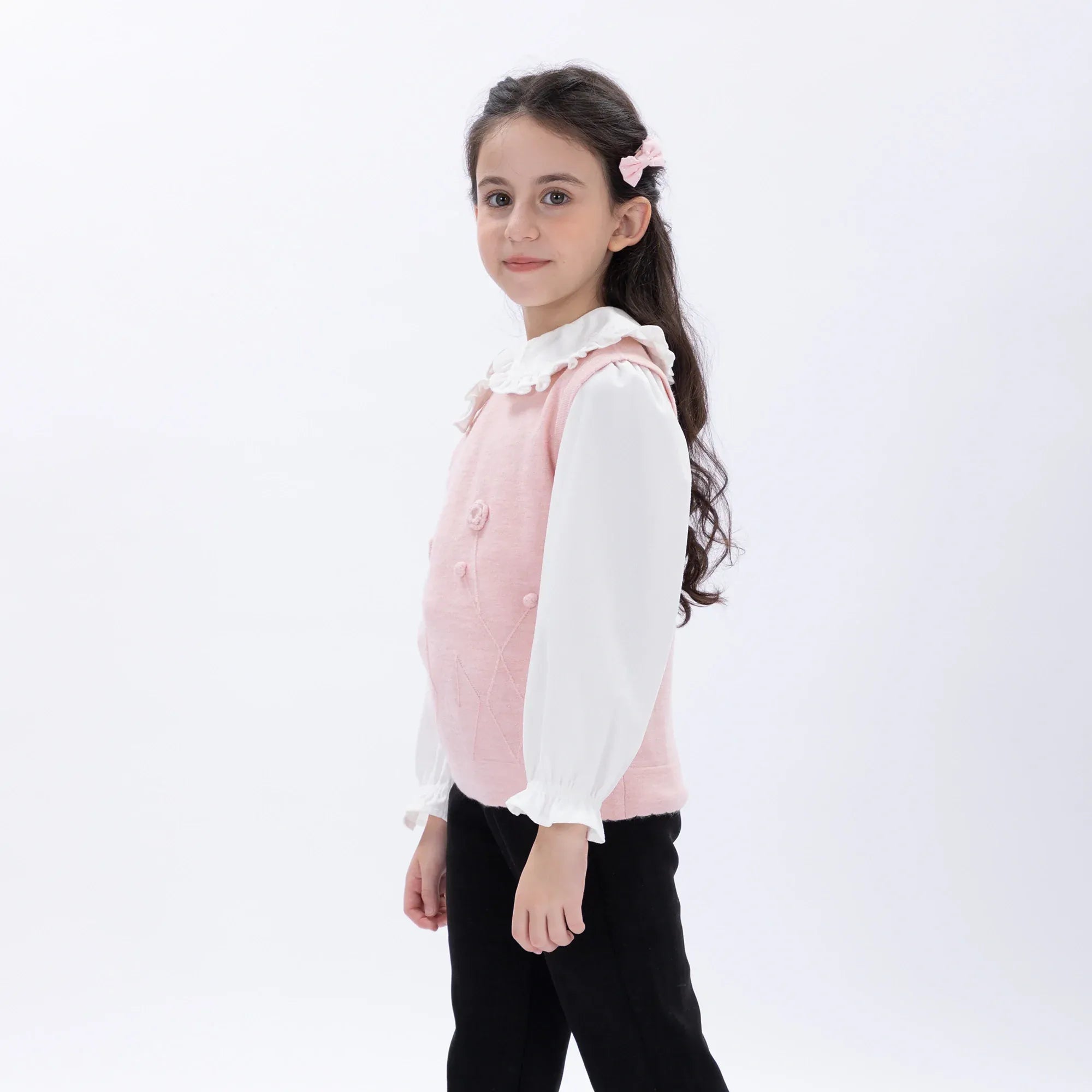 - Model Stats: Chest 57 cm, Waist 54 cm, Hips 66 cm, Height 124 cm, Weight 25 kg