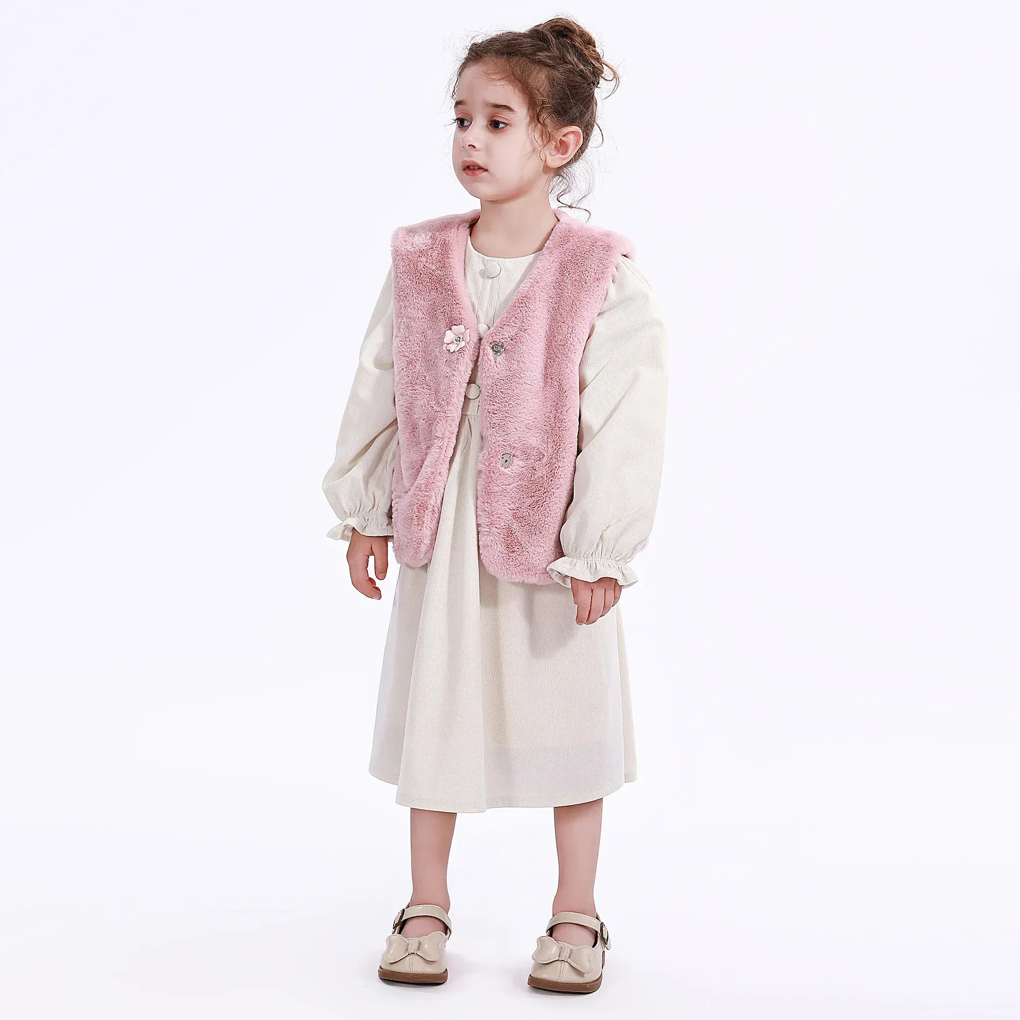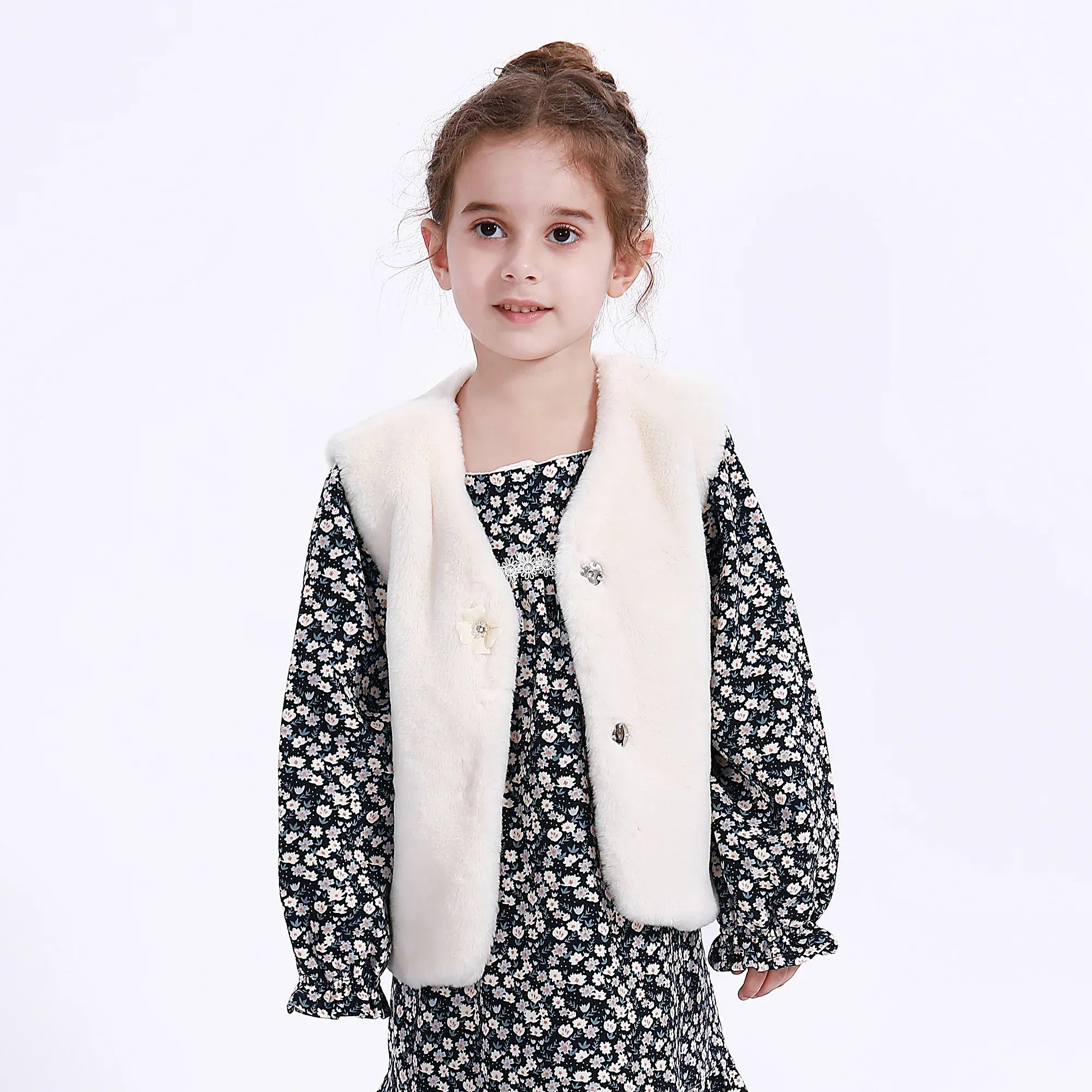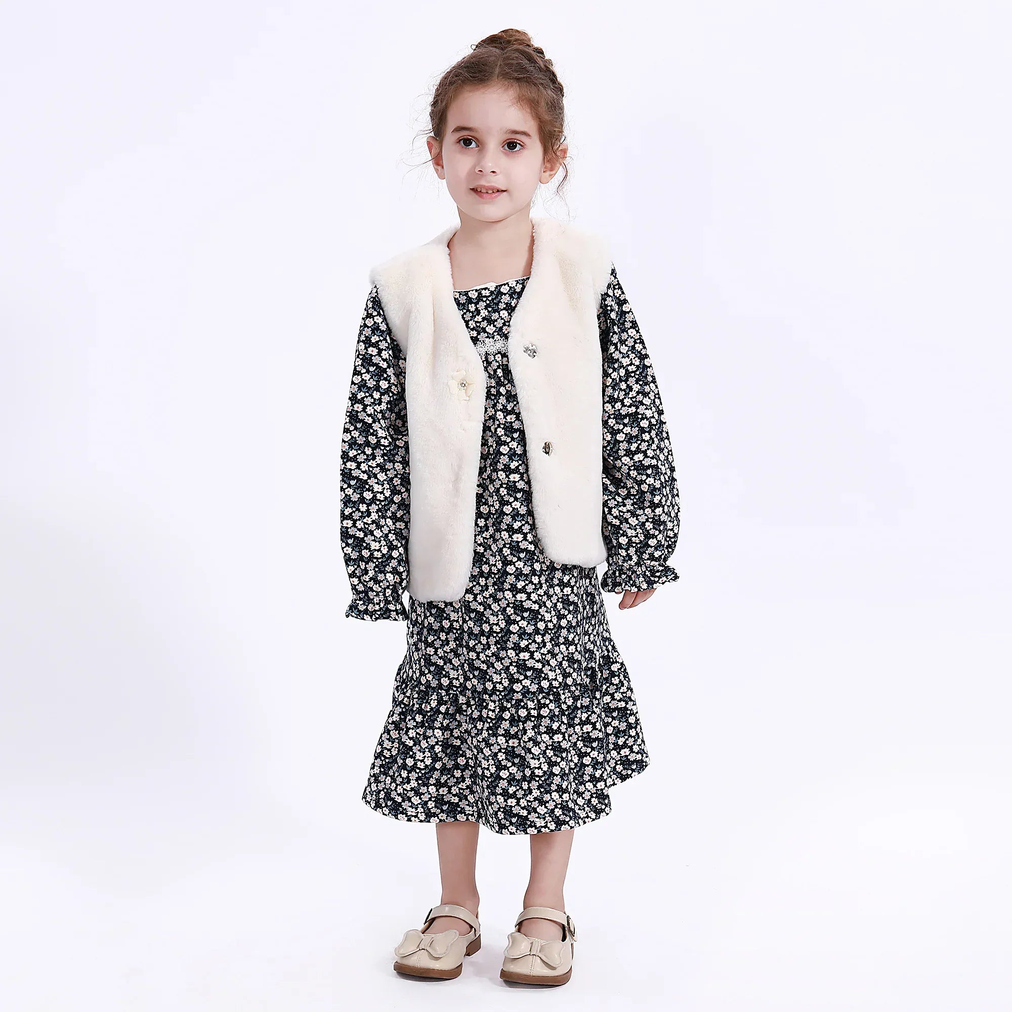 - Model Stats: Chest 53 cm, Waist 52 cm, Hips 54 cm, Height 110 cm, Weight 17 kg