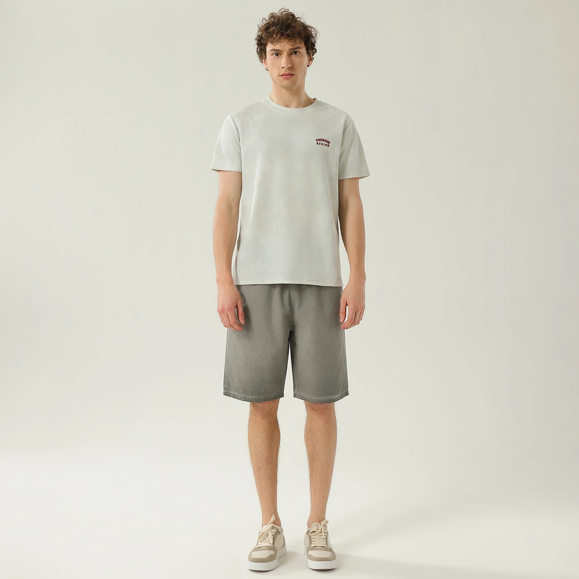 - Model Stats: Chest 99 cm, Waist 82 cm, Hips 99 cm, Height 187 cm, Weight 80 kg