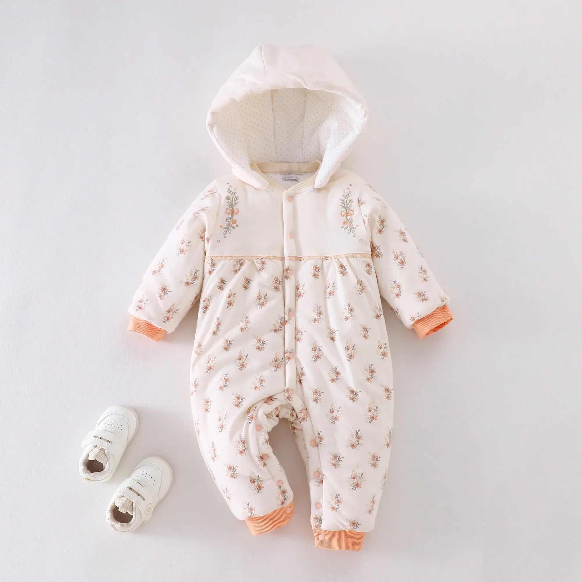 Light Beige Floral Pajamas Romper for Baby girl Image