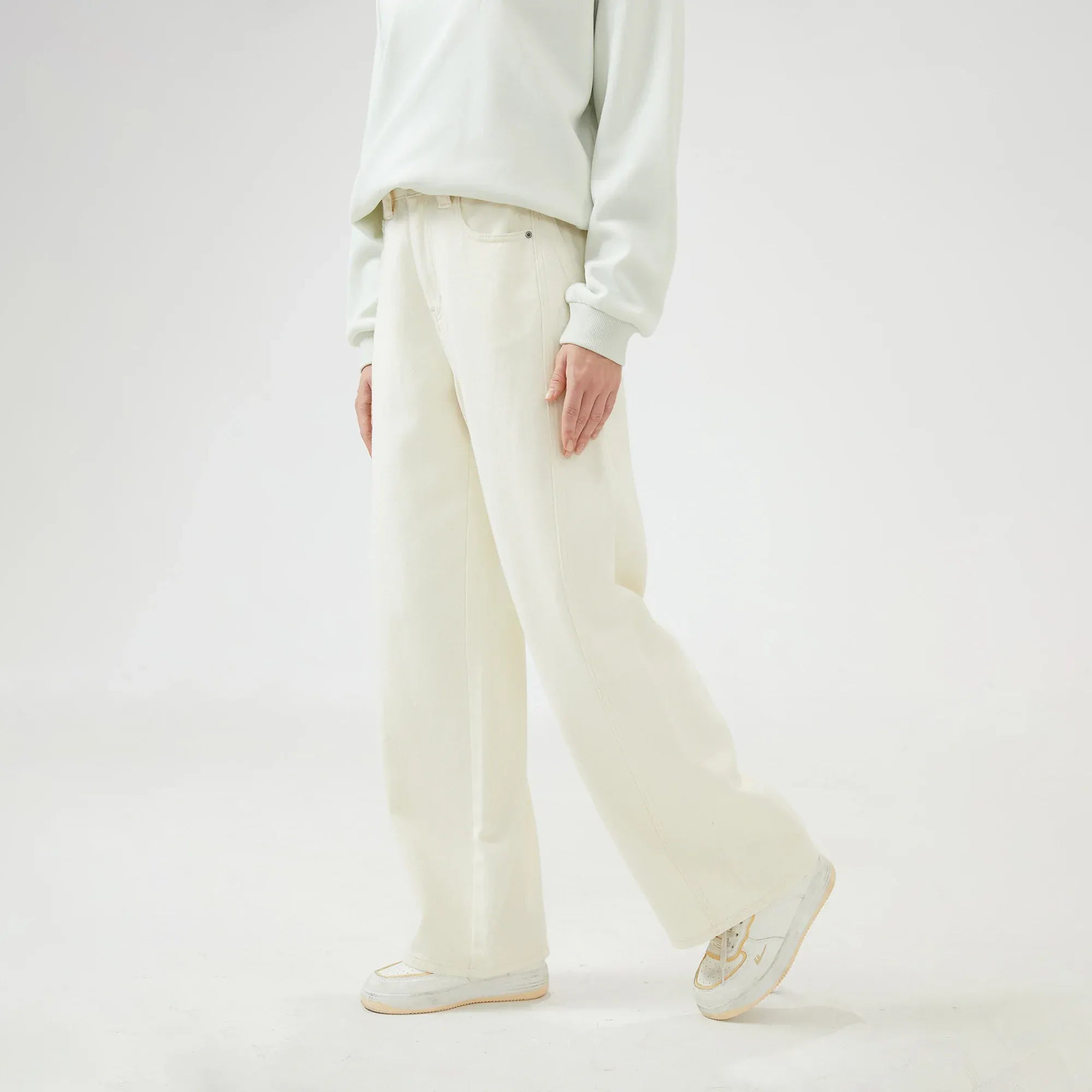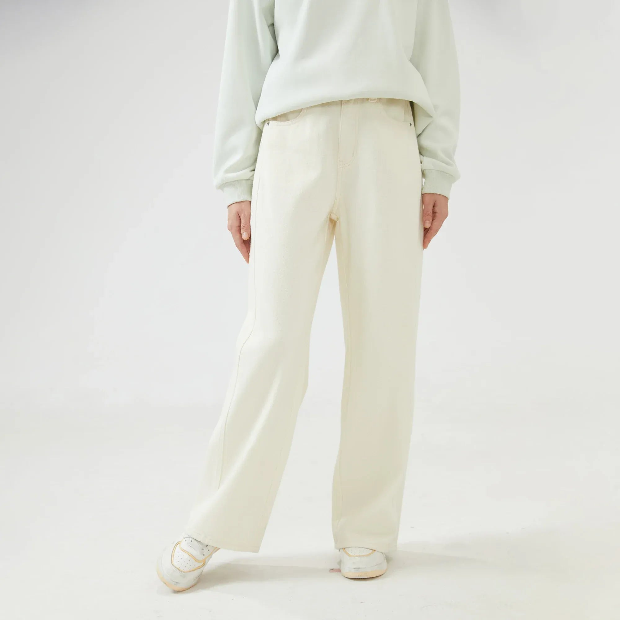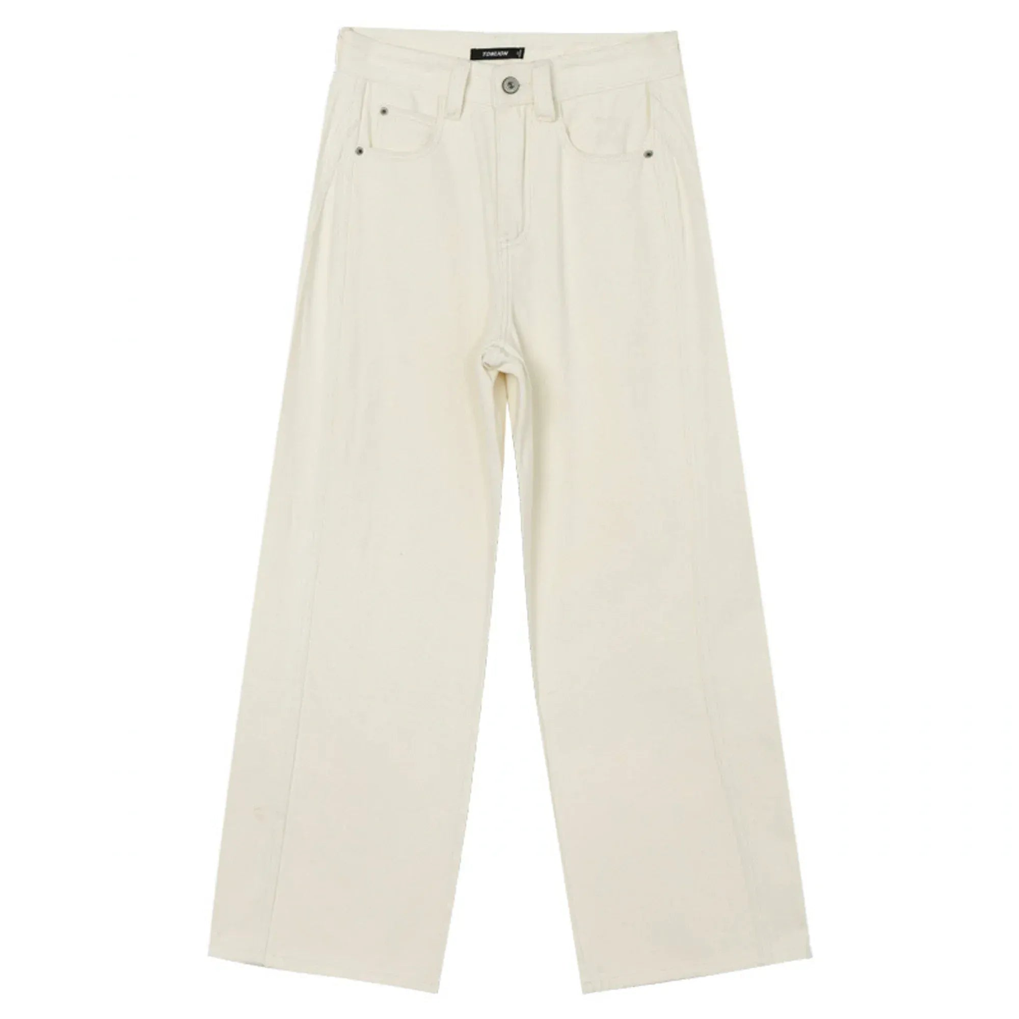 Jeans White Wide-Leg Mid-Wiast Plain Pants for Women Image