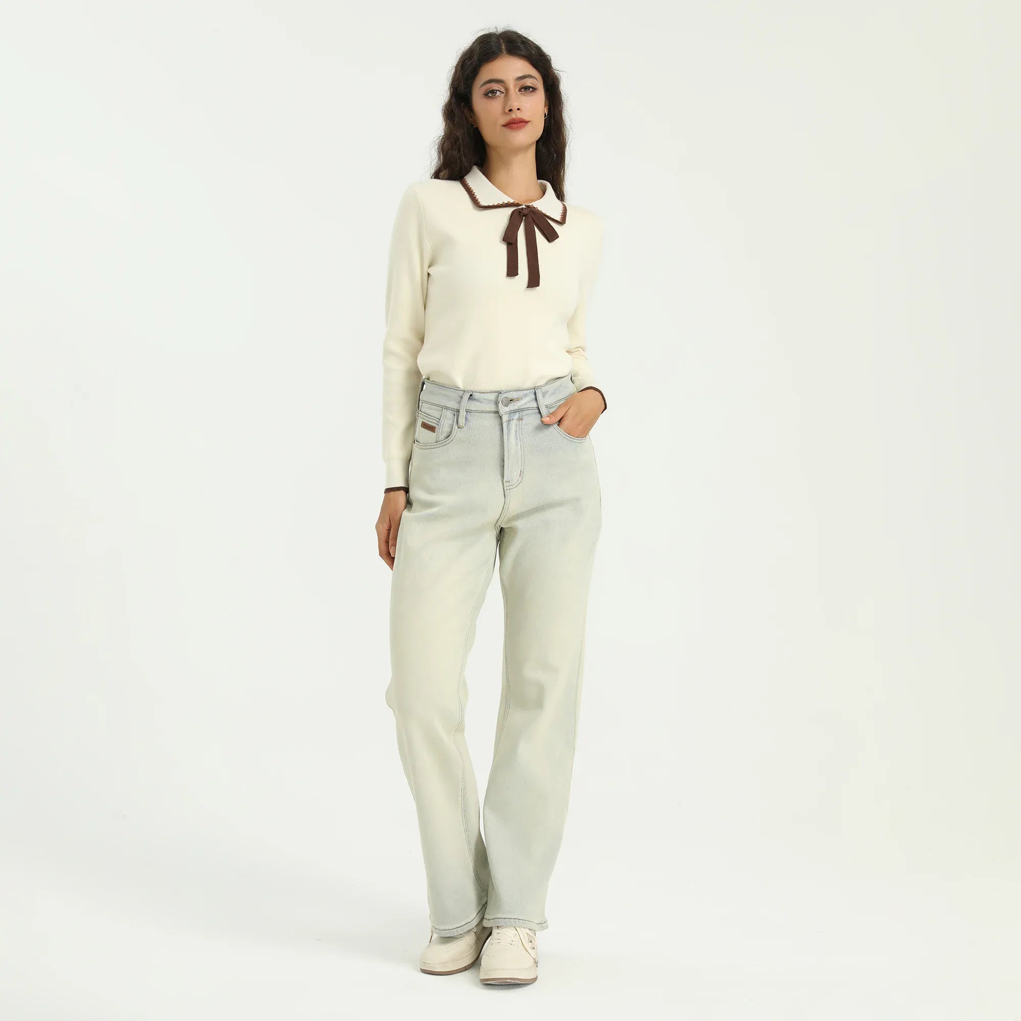Light Jeans Blue Elegant Washed Jeans Pants for Women Image