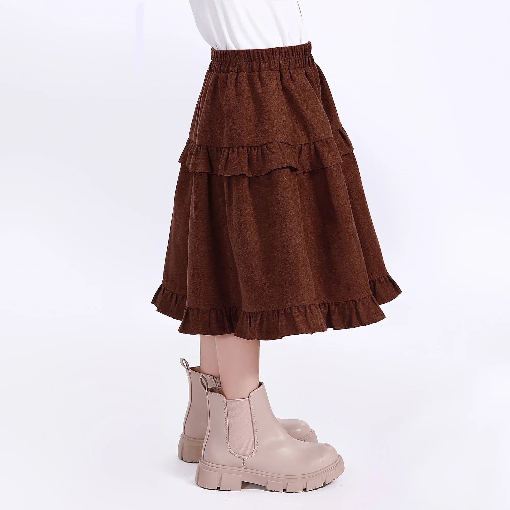 Brown Casual Plain Skirt for Girls Image