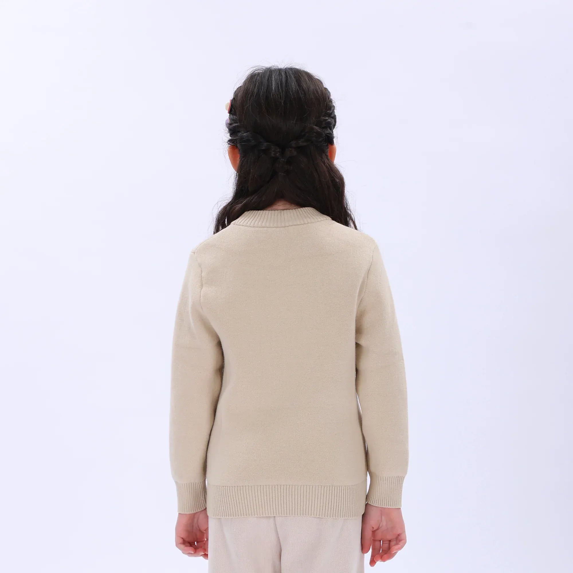 Dark Beige Casual Printed Sweater for Girls Image