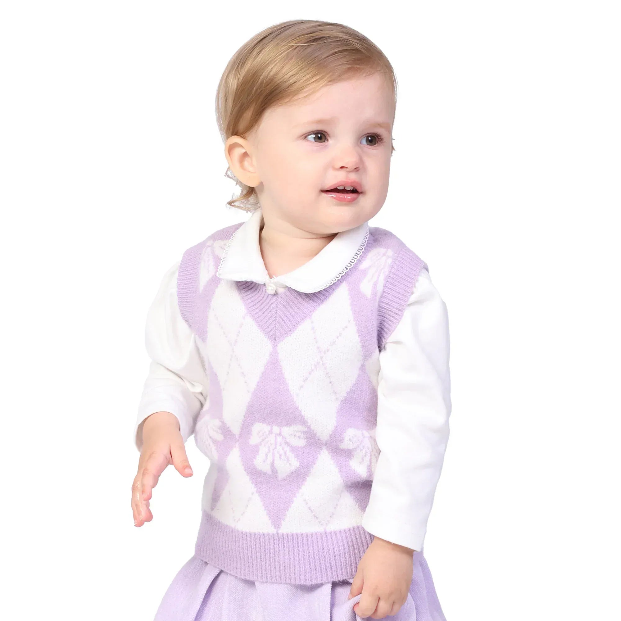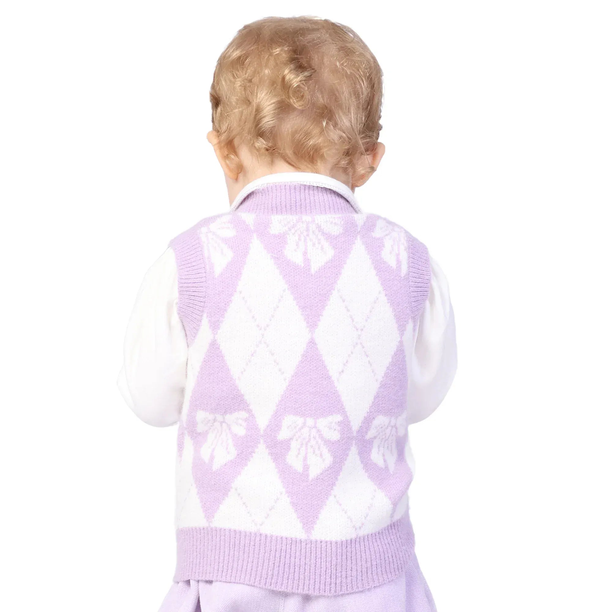 Light Purple Checked Formal Waistcoat for Baby girl Image