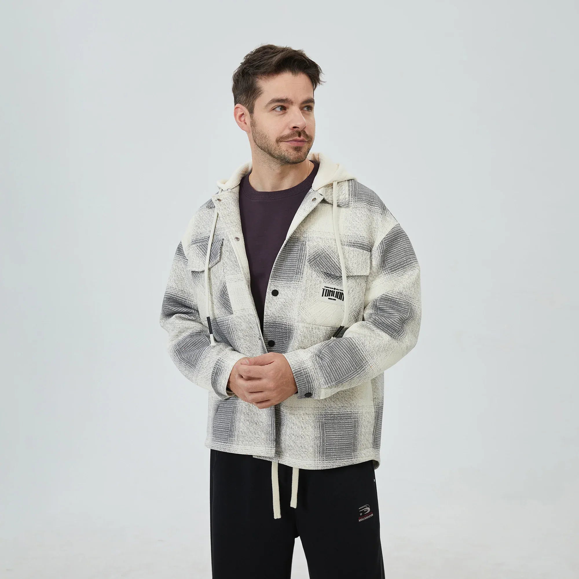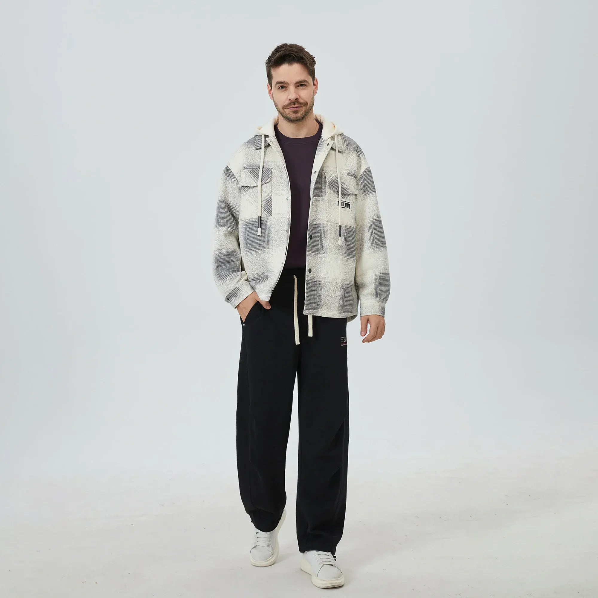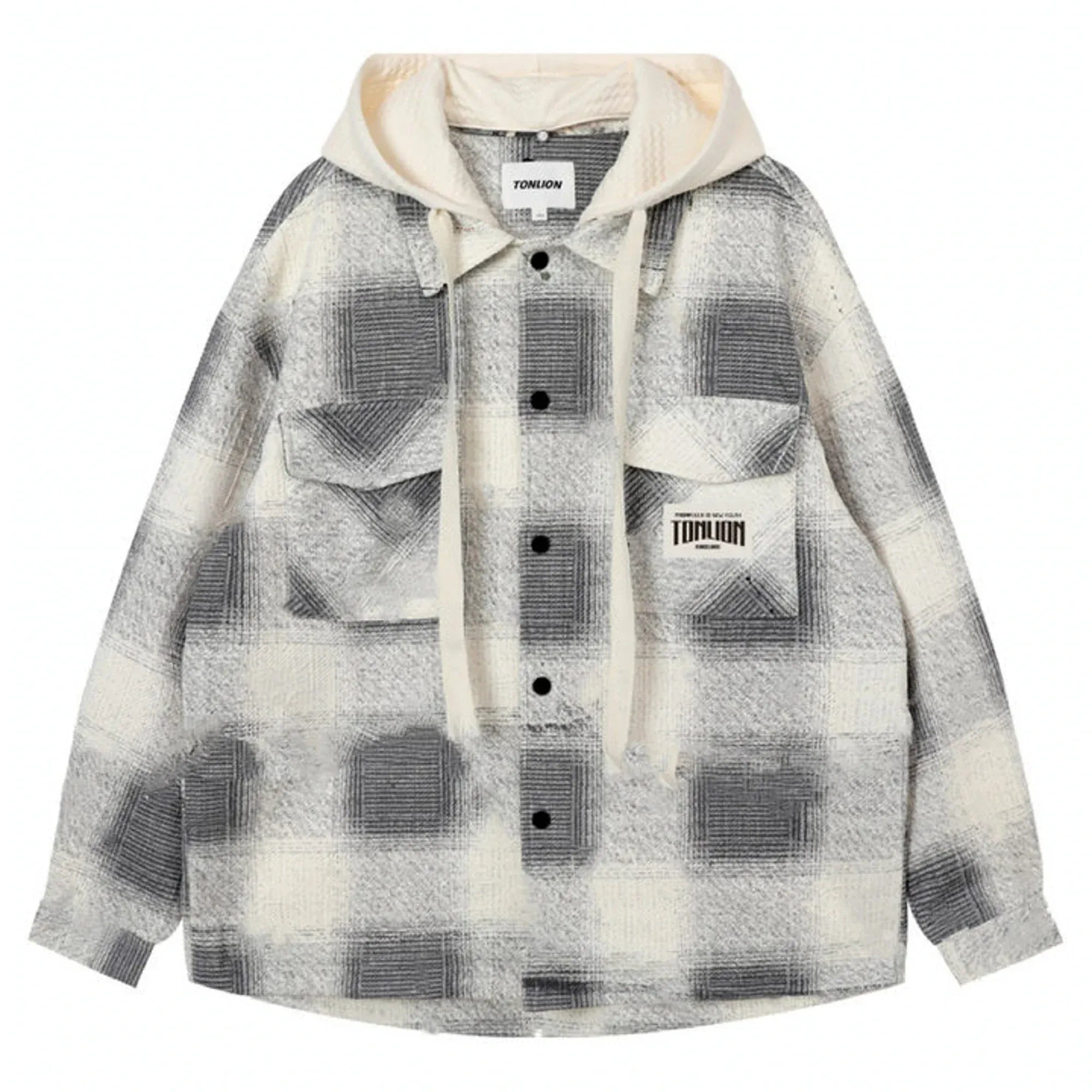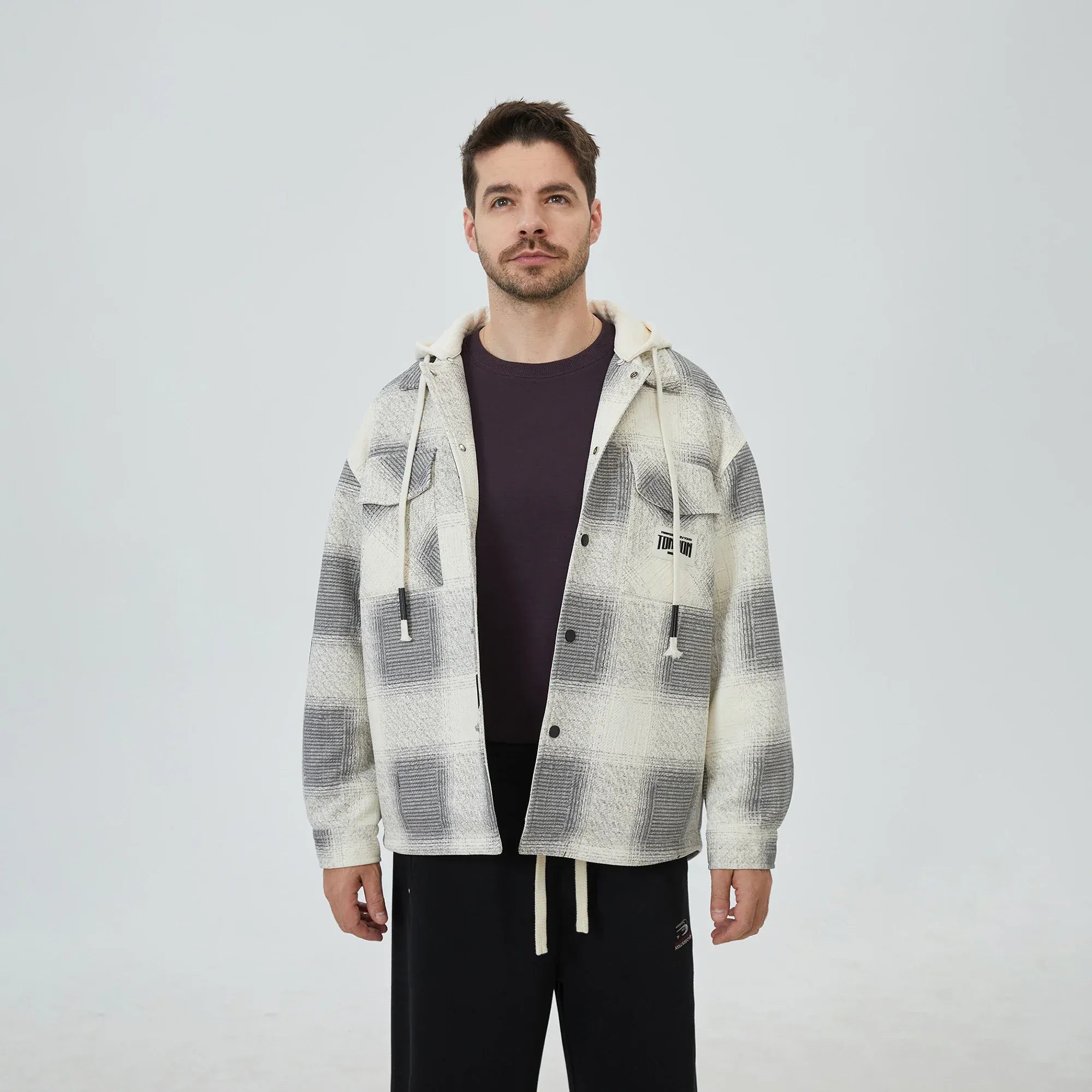 Product Description Length Sleeve: Long Sleeve Neck Fit: With Hood Top Fit: Loose Type Sleeve: Off-Shoulder Sleeves Pattern: Checked Fabric: Air Layer Jacquard Kintted Fabric+Lining:Plain Weave Polyester Model Wears: M...
