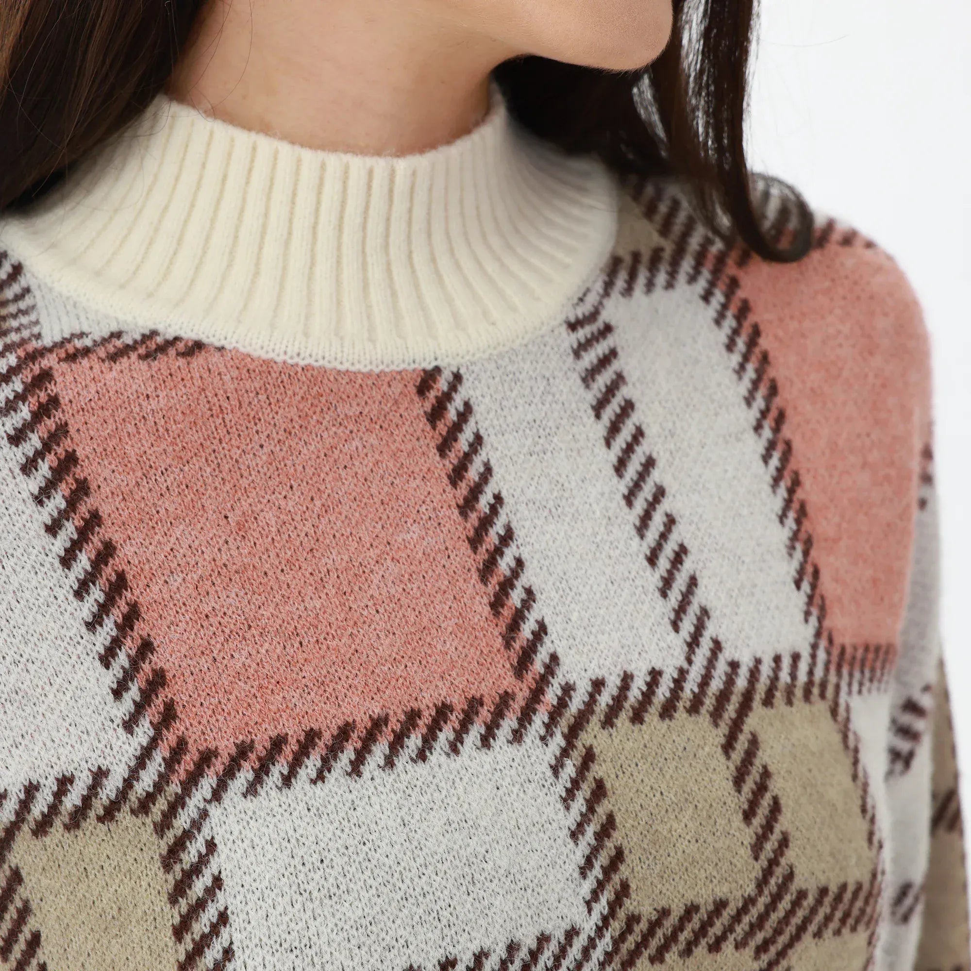 Product Description Length Sleeve: Long Sleeve Neck Fit: High-Neck Top Fit: Loose Type Sleeve: Drop-Shoulder Sleeves Pattern: Checked Fabric: North Polar Velvet Yarn Additional Material: 52%Acrylic 28%Nylon 20%Polyester Fiber Model...