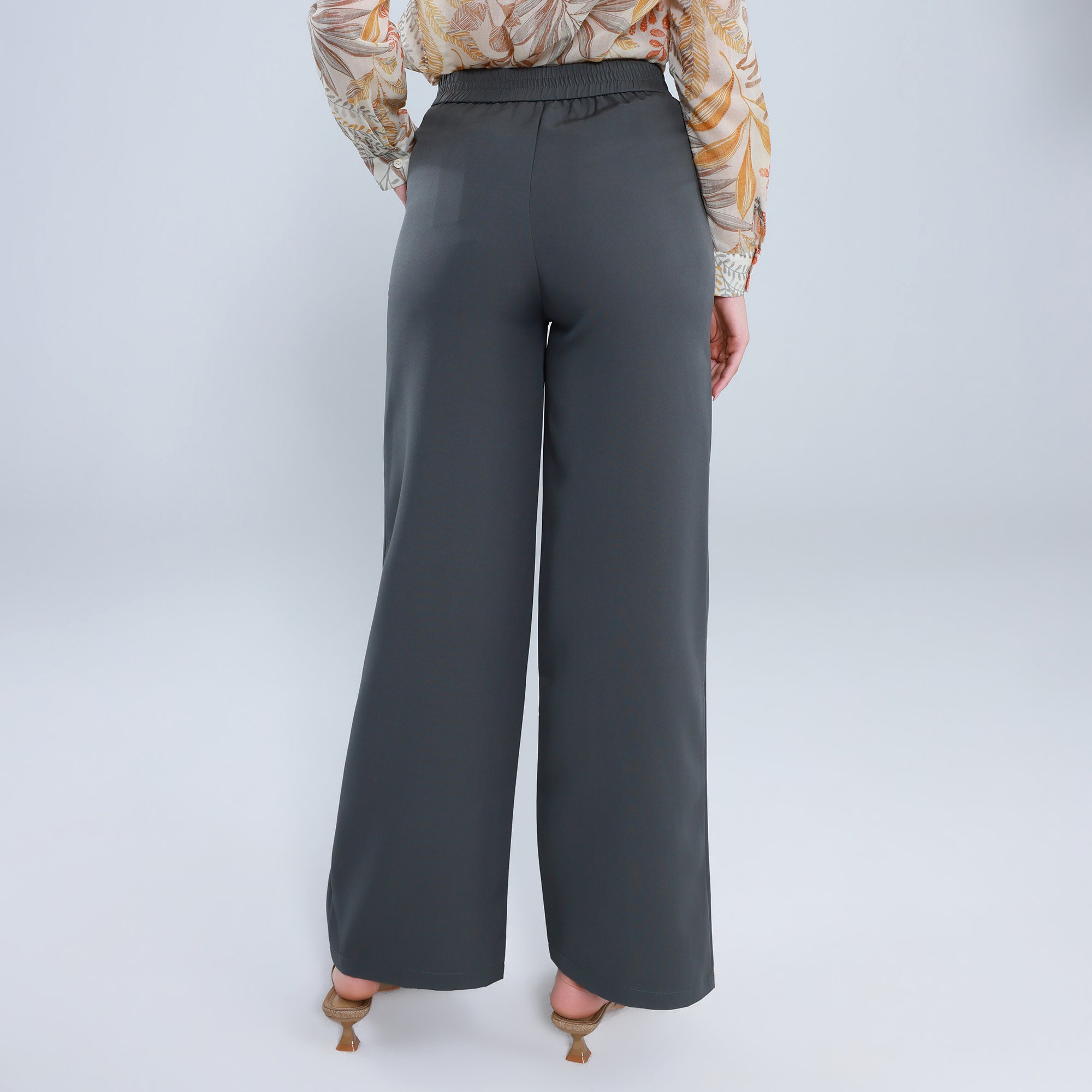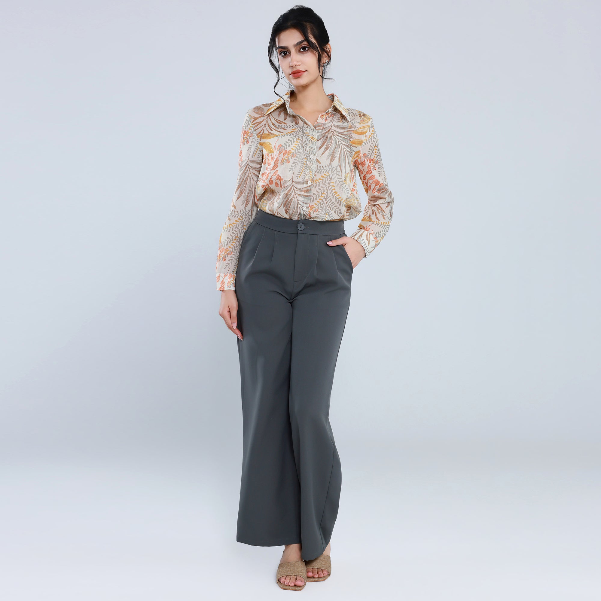 Product Description Down fit: Wide-Leg Down Waist: Mid-Waist Down Length: 100% Pattern: Plain Fabric: Fine Twill Woven Additional Material: 100%Polyester Fiber Model Wears: 28 Model Stats: Chest 86 cm, Waist...