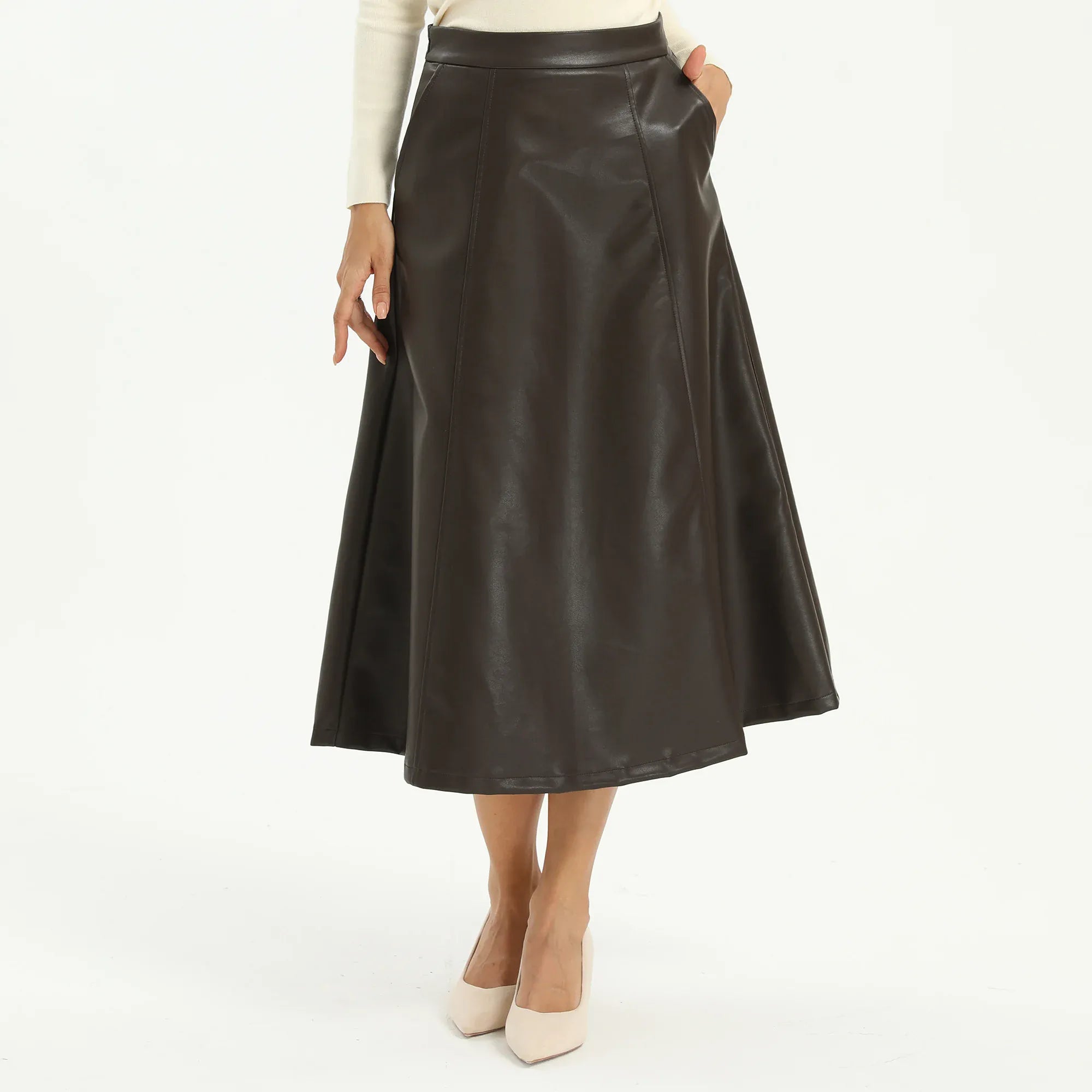 Coffee Elegant Plain Skirt for Women Image