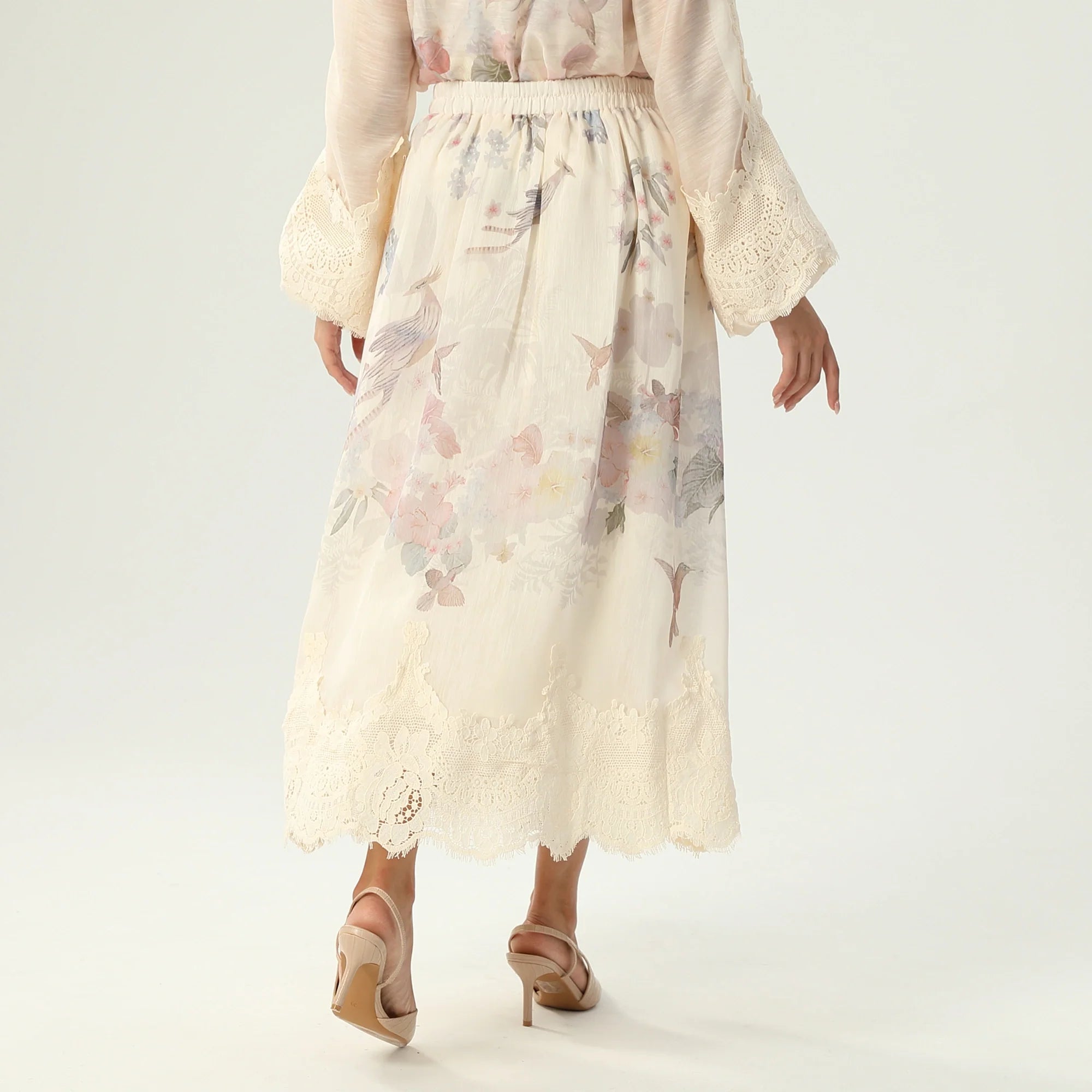 Product Description Down fit: Skater Down Waist: Mid-Waist Down Length: 80% Pattern: Floral Fabric: Fabric:Tencel Linen Woven++Lining:Four Sided Stretch Plain Weave Additional Material: Fabric:100%Polyester Fiber,Lining:100%Polyester Fiber Model Wears: M Model...
