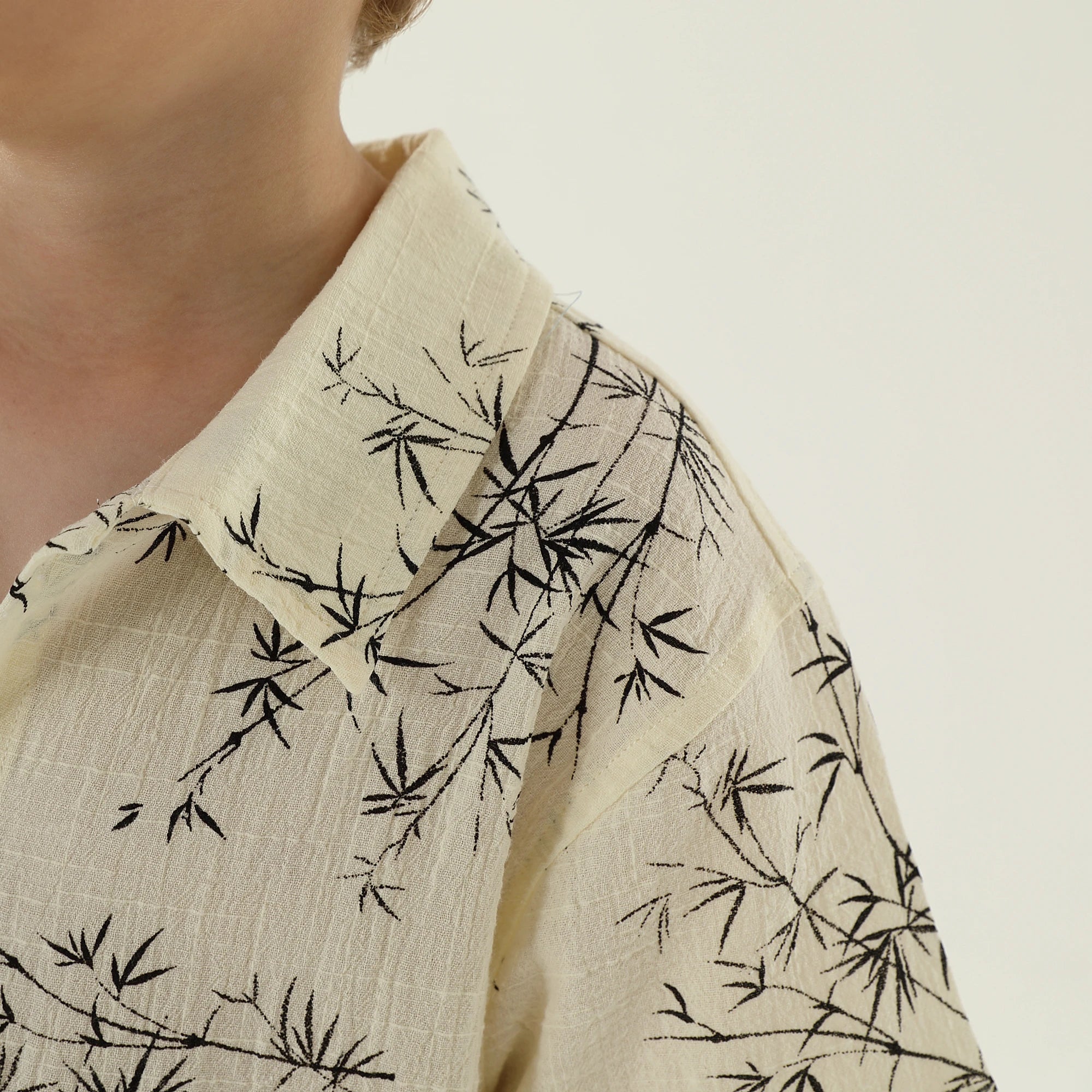 Product Description Length Sleeve: Short Sleeve Neck Fit: Collar Top Fit: Regular Type Sleeve: Sleeve Pattern: Leaves Fabric: Printed Slubbed Plain Weave Additional Material: 100%Cotton Model Wears: 120 Model Stats:...