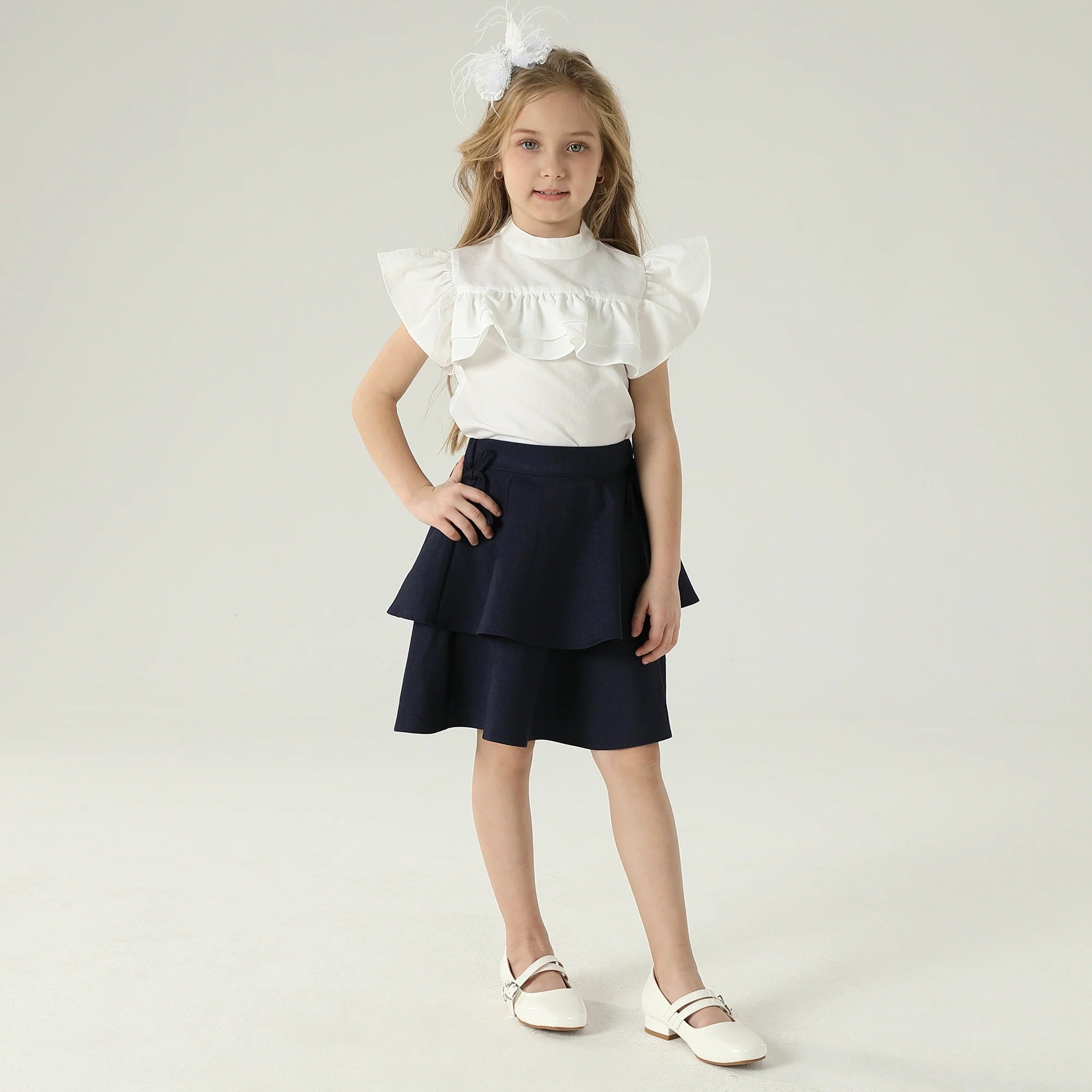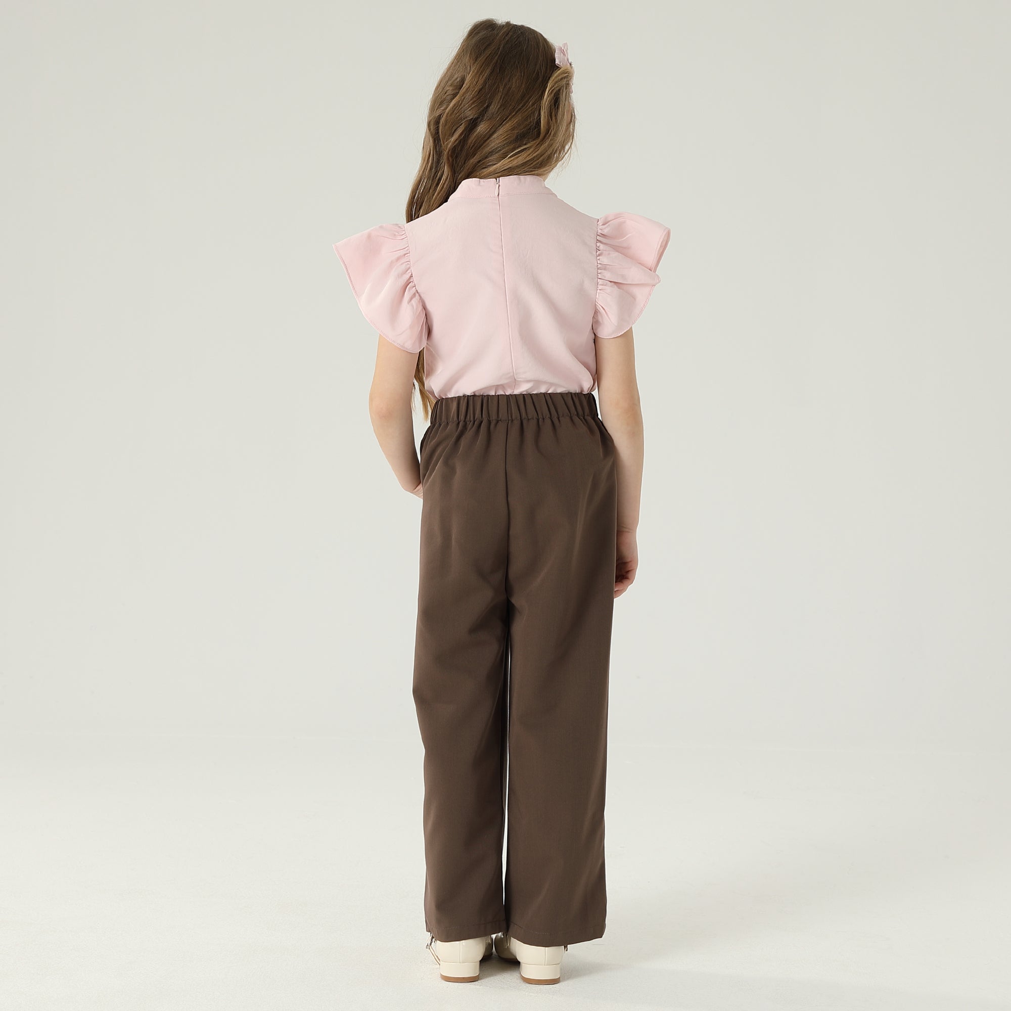 Product Description Length Sleeve: Short Sleeve Neck Fit: Stand Collar Top Fit: Regular Type Sleeve: Flutter Sleeve Pattern: Plain Fabric: Plain Weave Additional Material: 100%Polyester Model Wears: 120 Model Stats:...