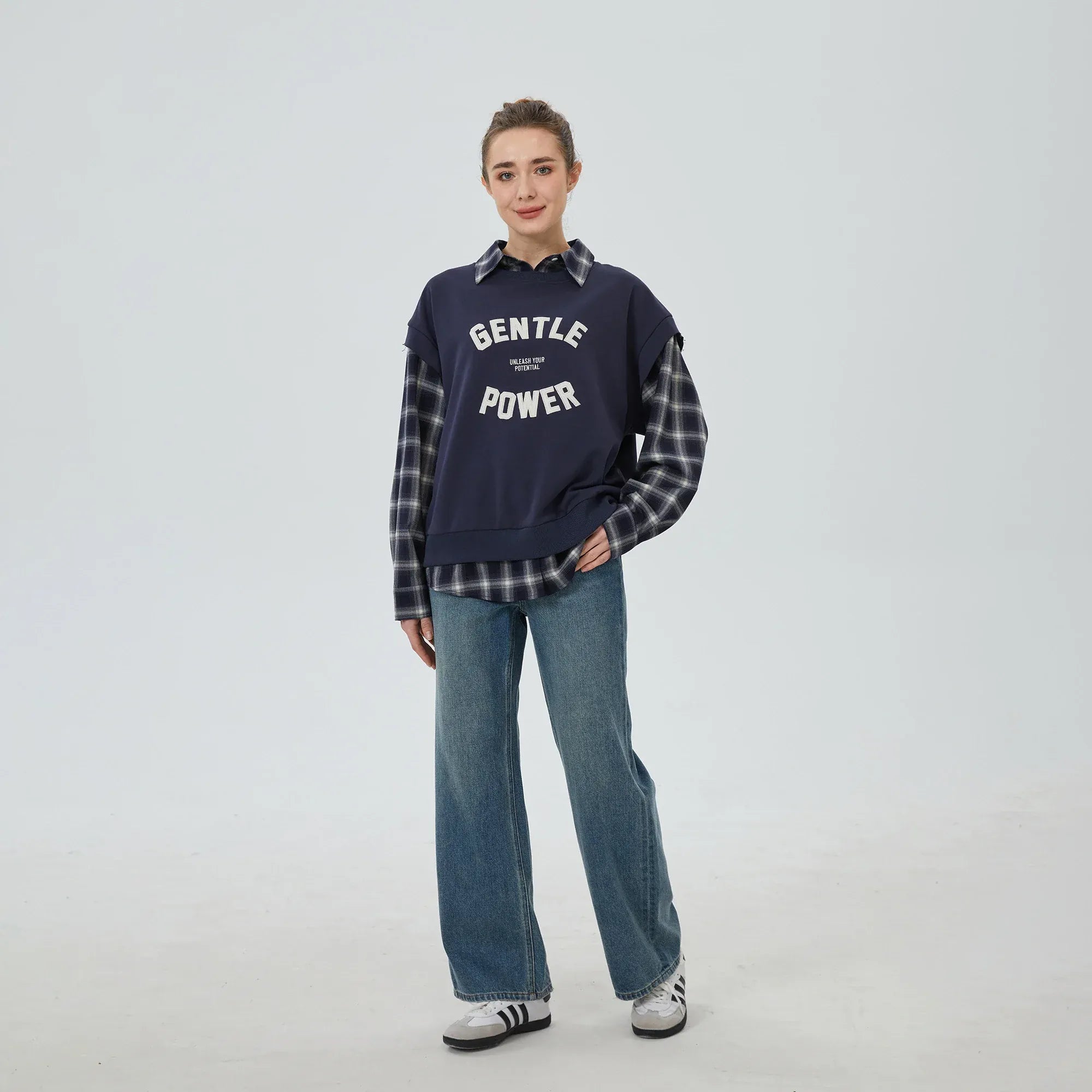Product Description Length Sleeve: Long Sleeve Neck Fit: Collar Top Fit: Loose Type Sleeve: Off-Shoulder Sleeves Pattern: Printed Fabric: Layer Interloop+Yarn-Dyed Checked Woven Model Wears: M Model Stats: Chest 82...