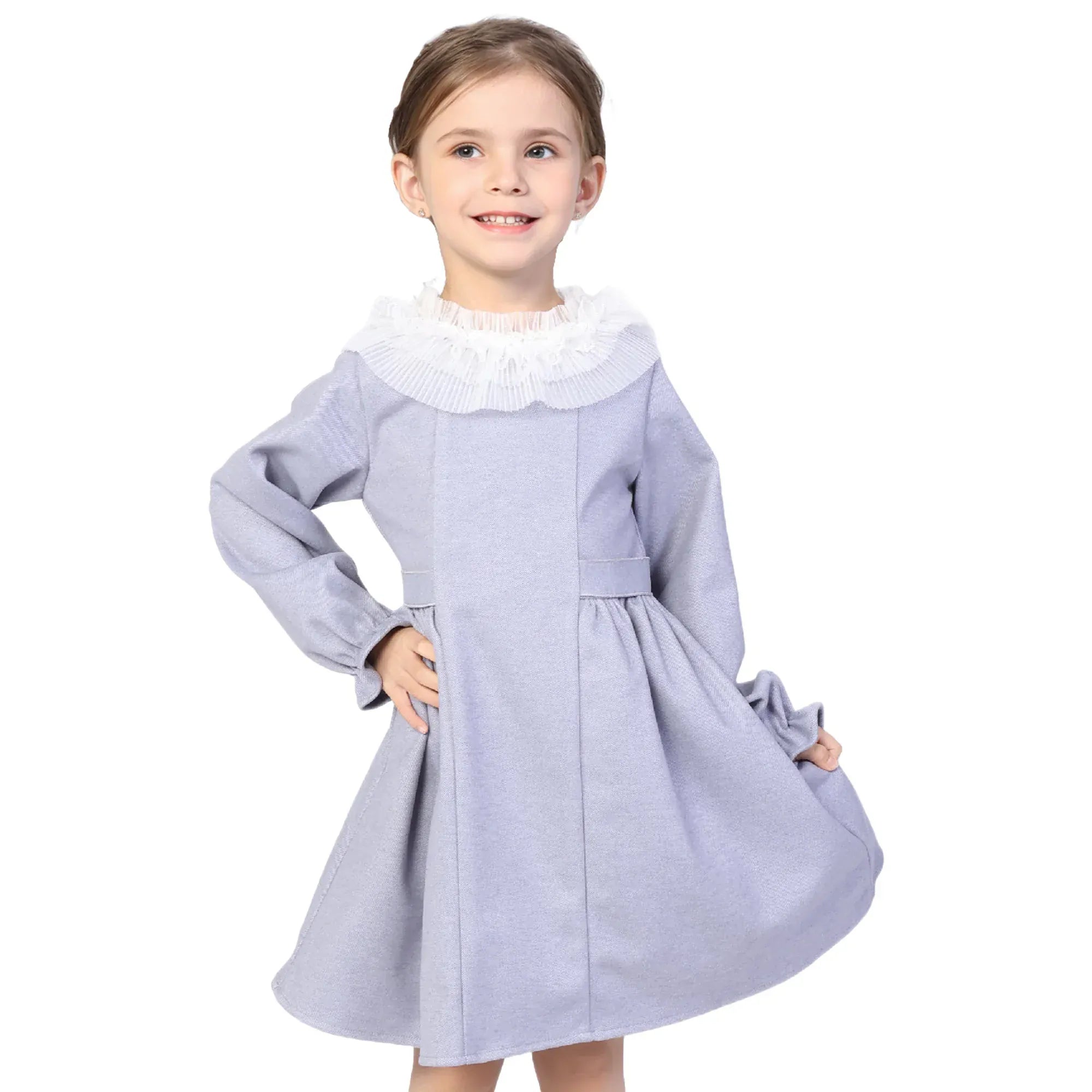 Grey Blue Solid Formal Dress for Girls Image