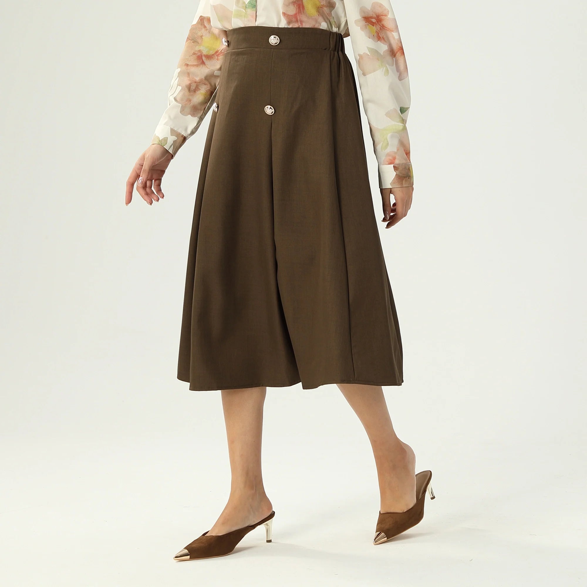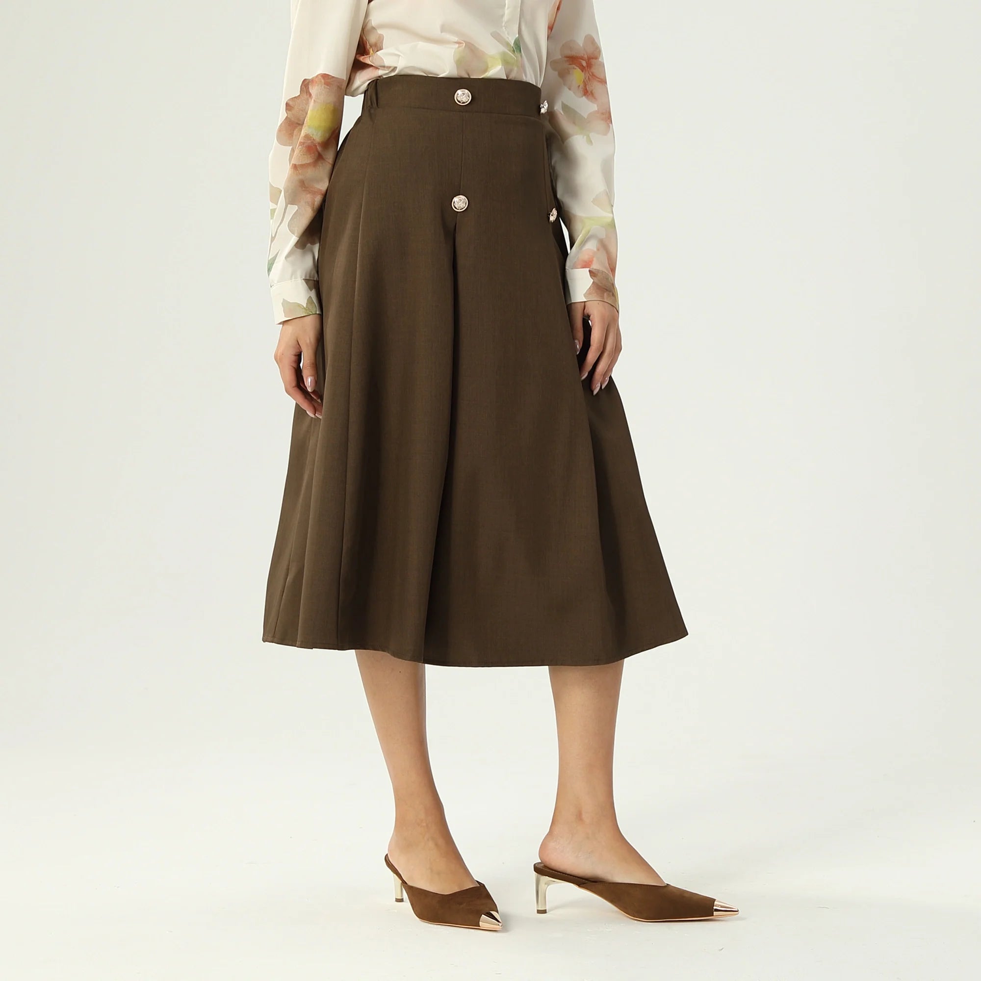 Product Description Down fit: Skater Down Waist: Mid-Waist Down Length: 70% Pattern: Solid Fabric: Boutique Twill Woven Additional Material: 96%Polyester Fiber 4%Spandex Model Wears: M Model Stats: Chest 88 cm,...