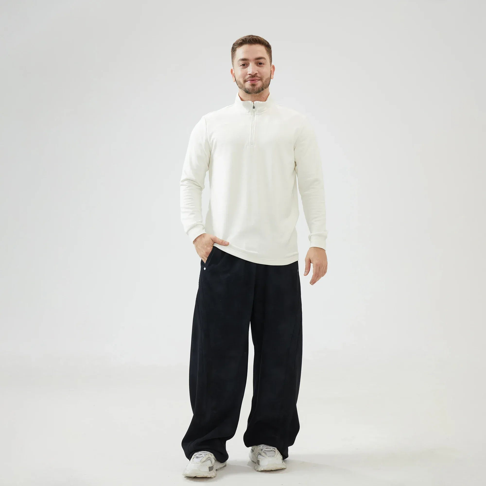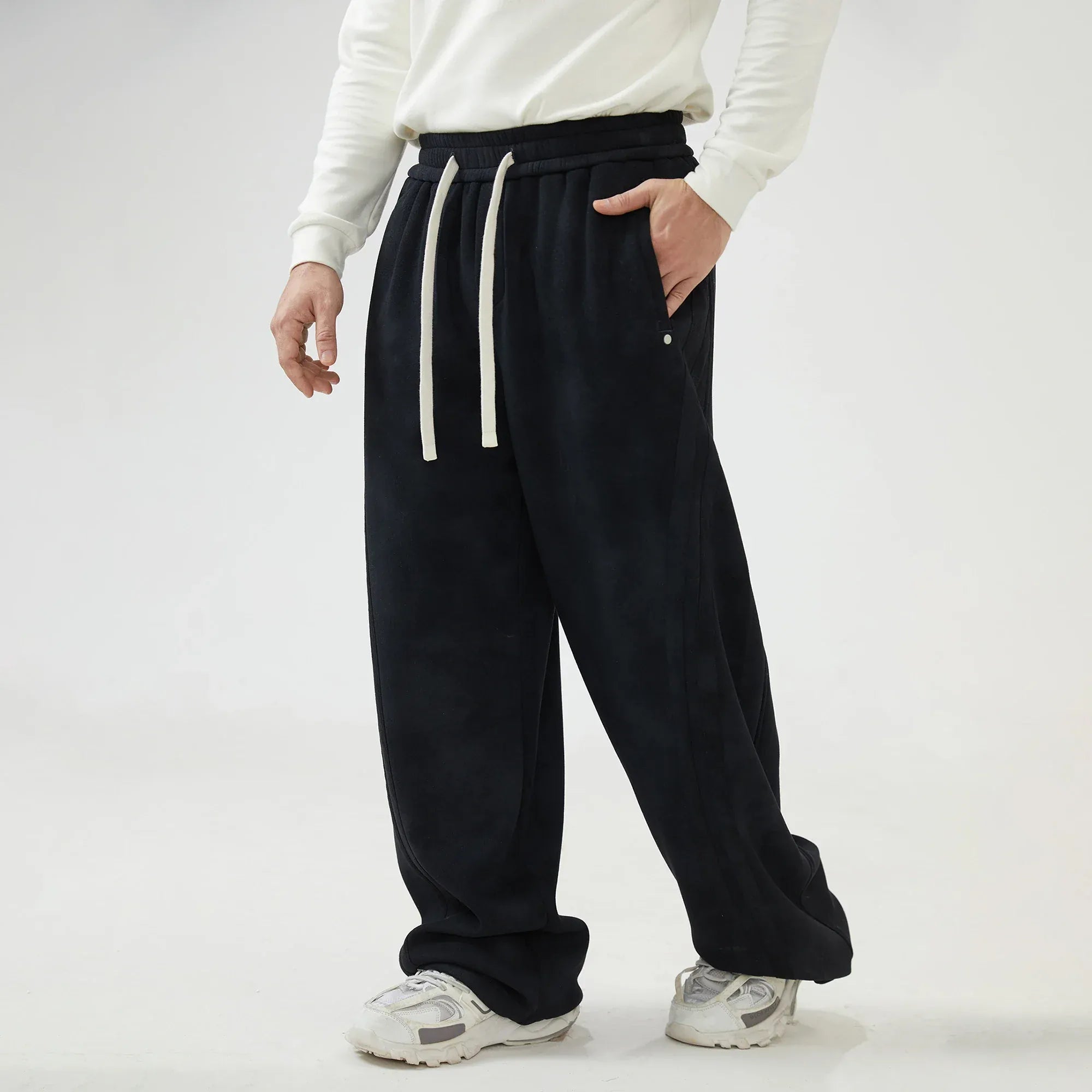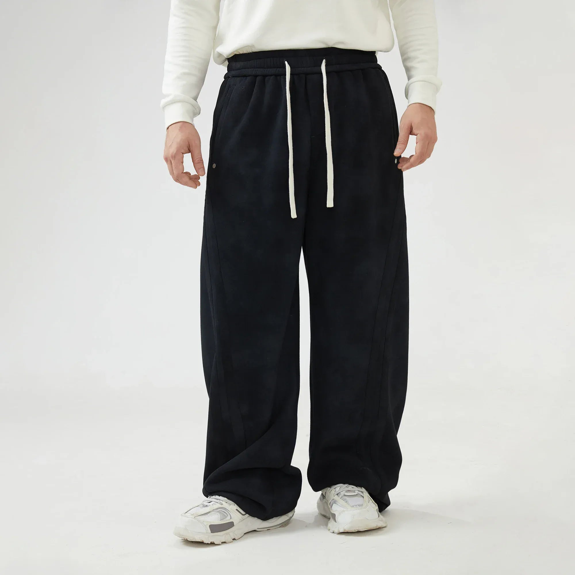 Black Baggy Mid-Wiast Tie-Dye Pants for Men Image