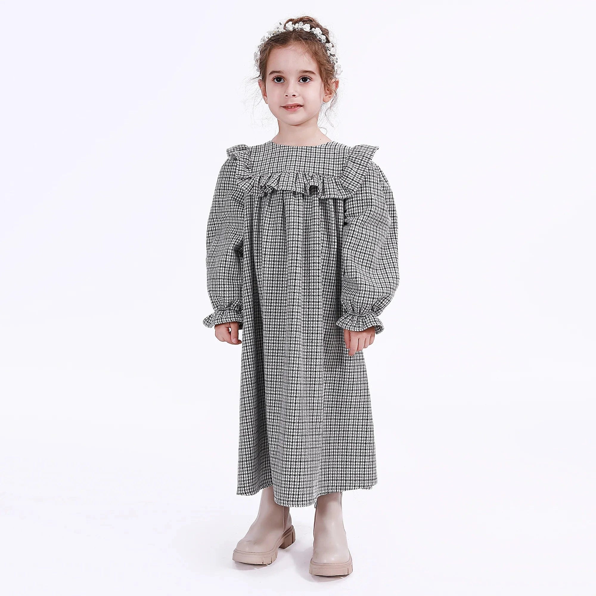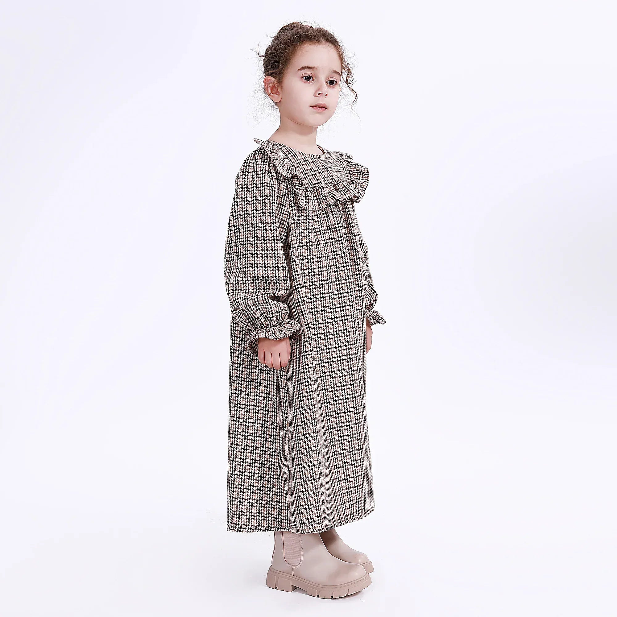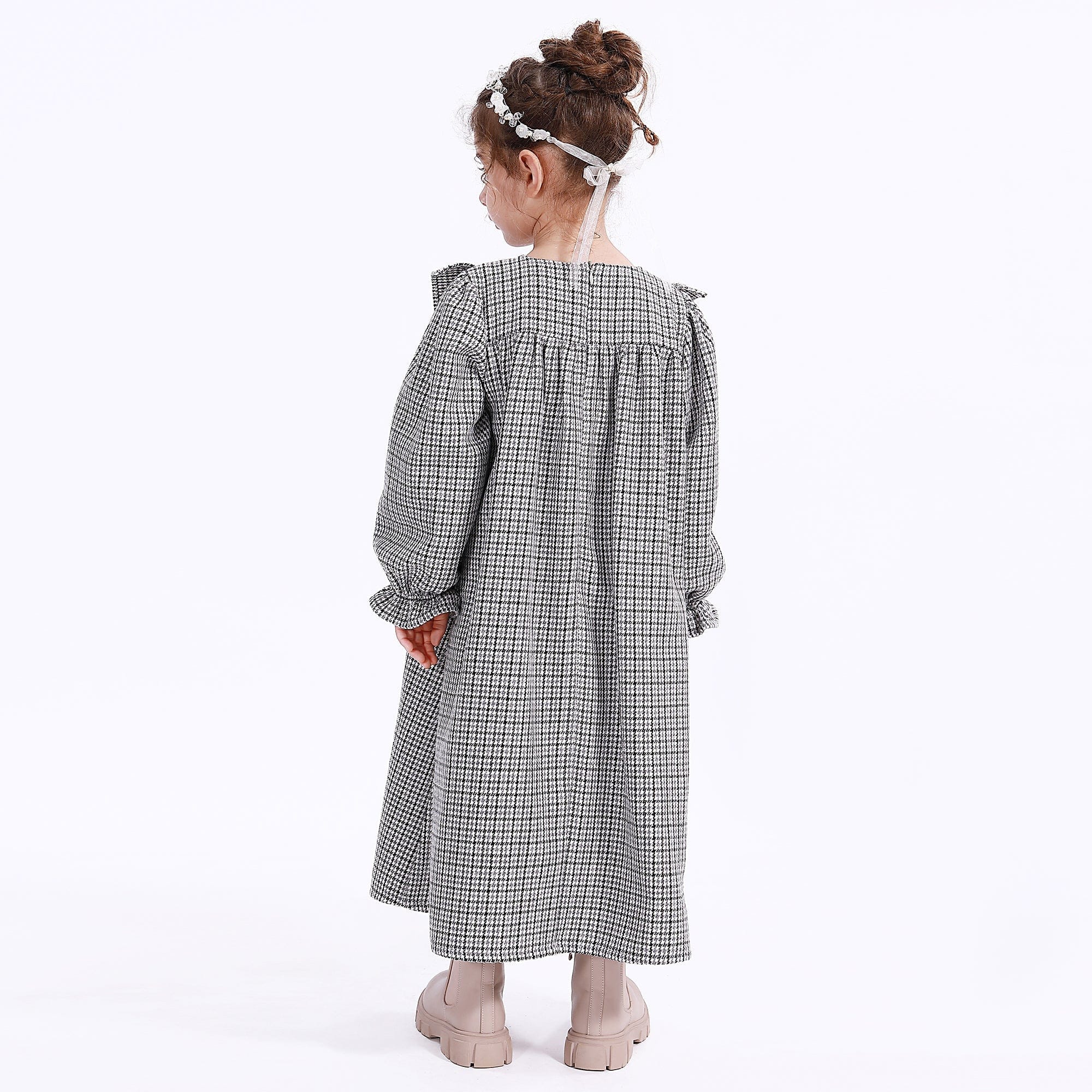 فستان كاروهات كاجوال بياقة مربعة كشكش للبنات
