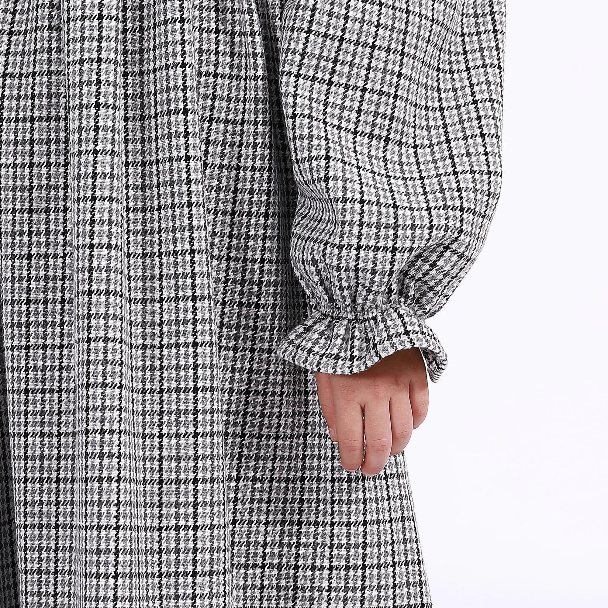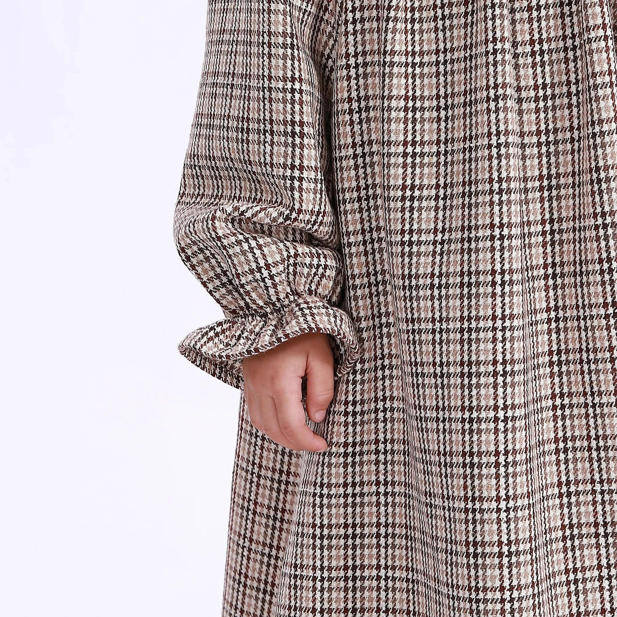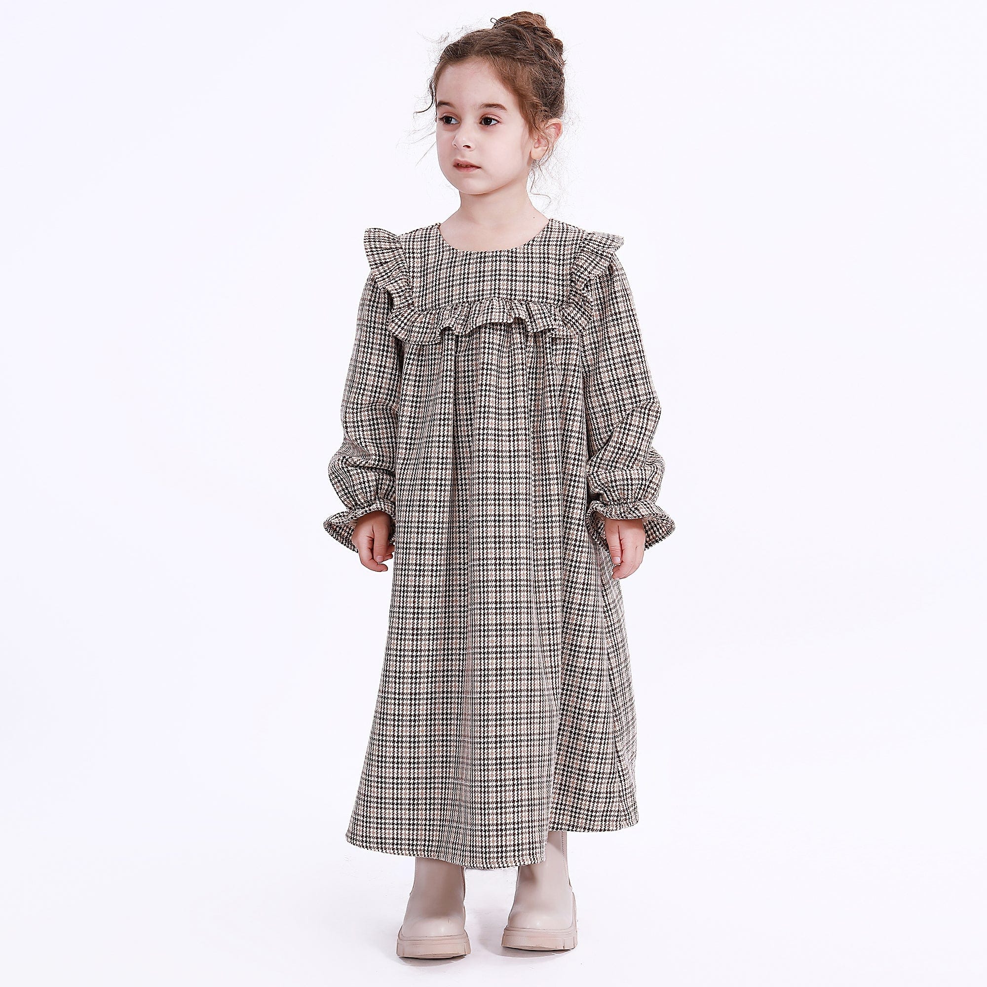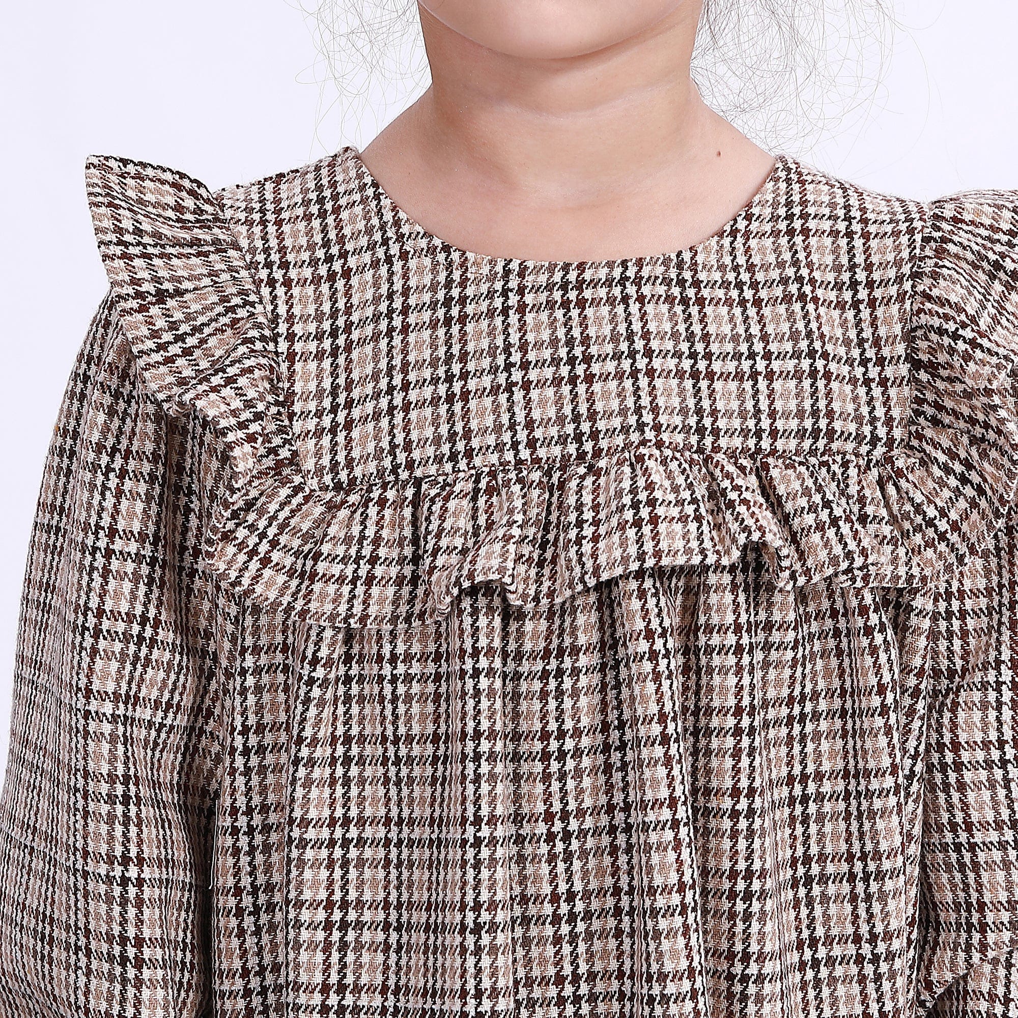 فستان كاروهات كاجوال بياقة مربعة كشكش للبنات