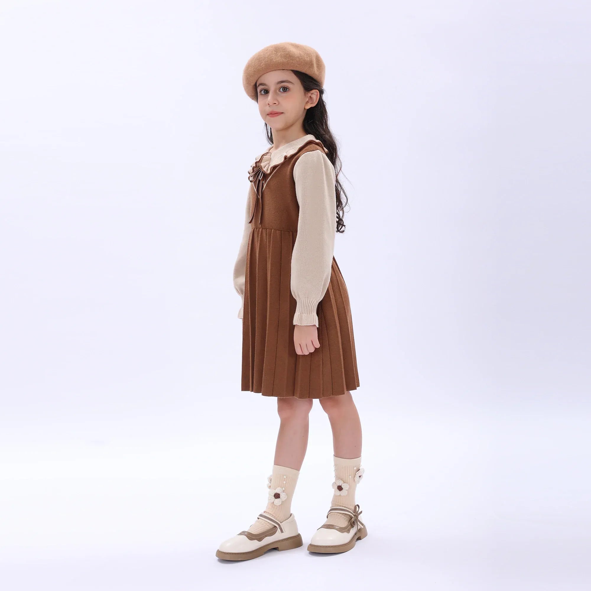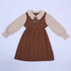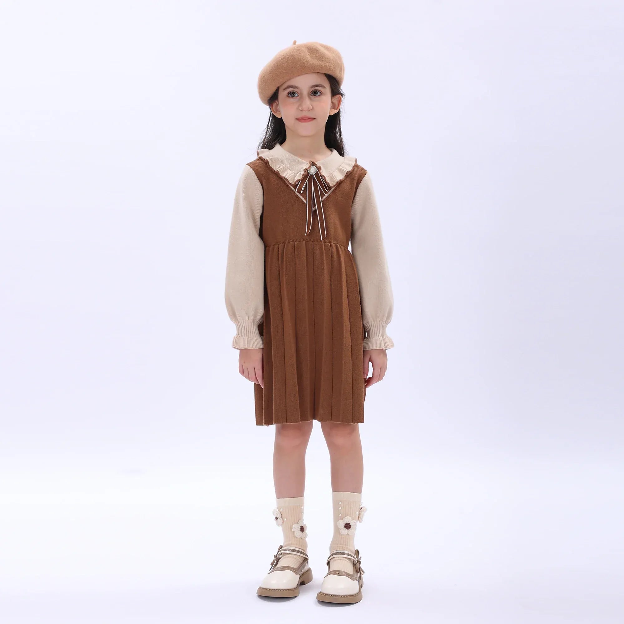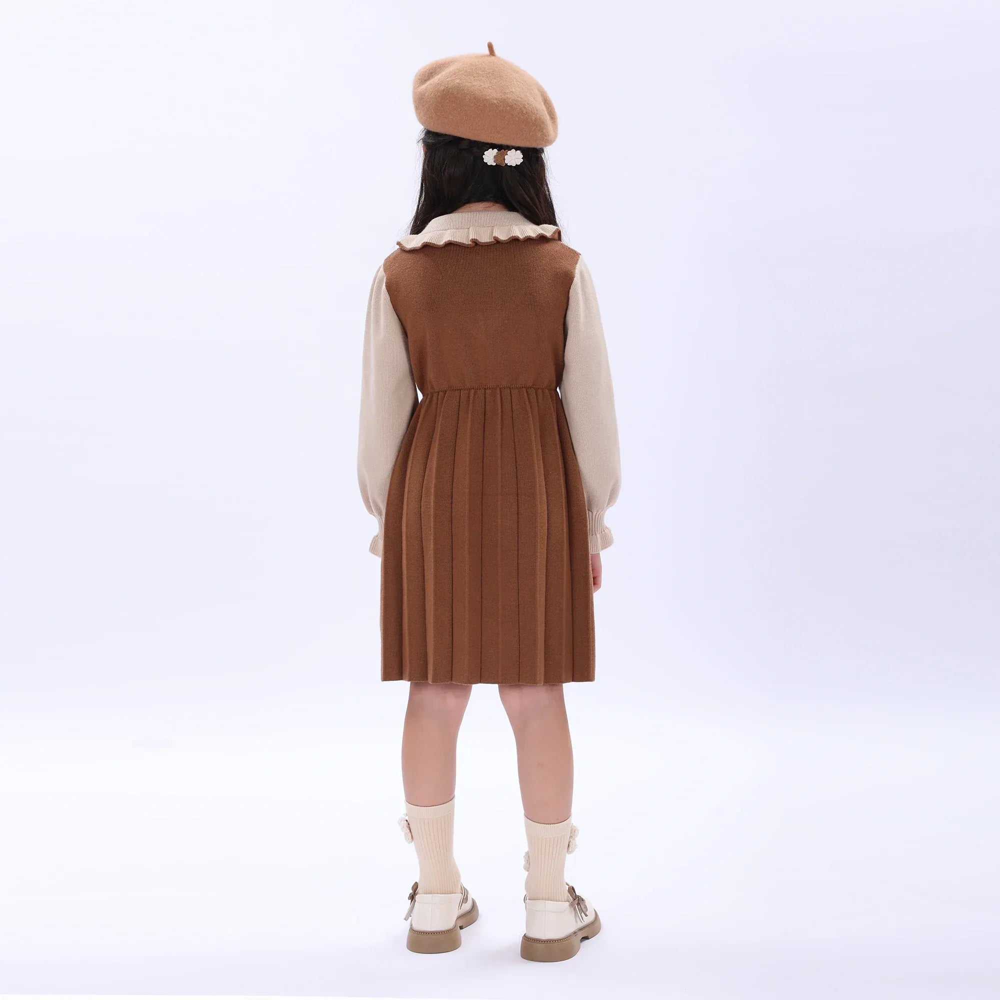 Light Coffee Casual Color-Blocked Dress for Girls Image
