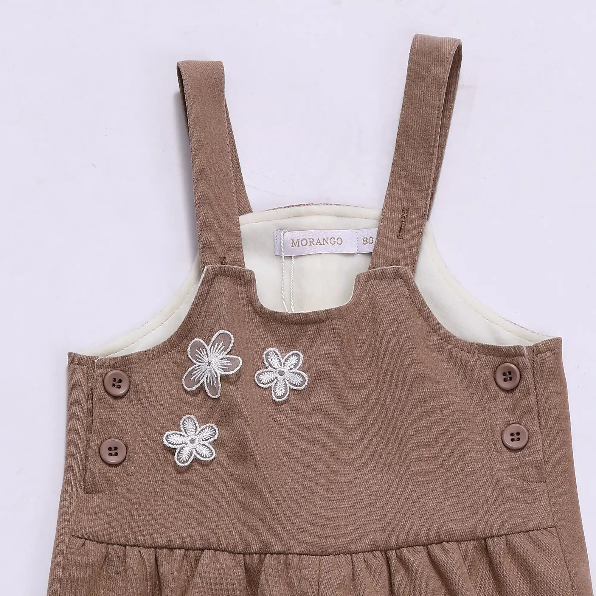 أفرول مُزين بجيوب وورد للمواليد البنات