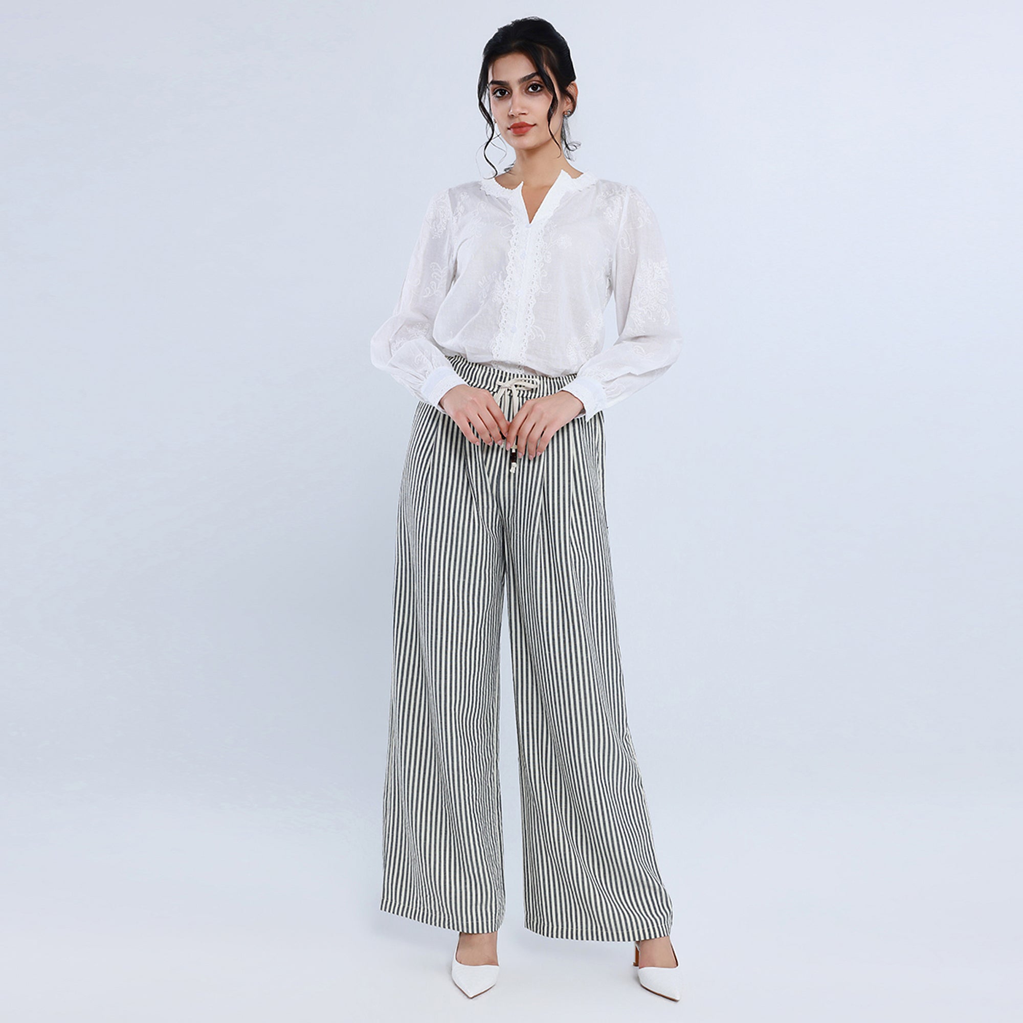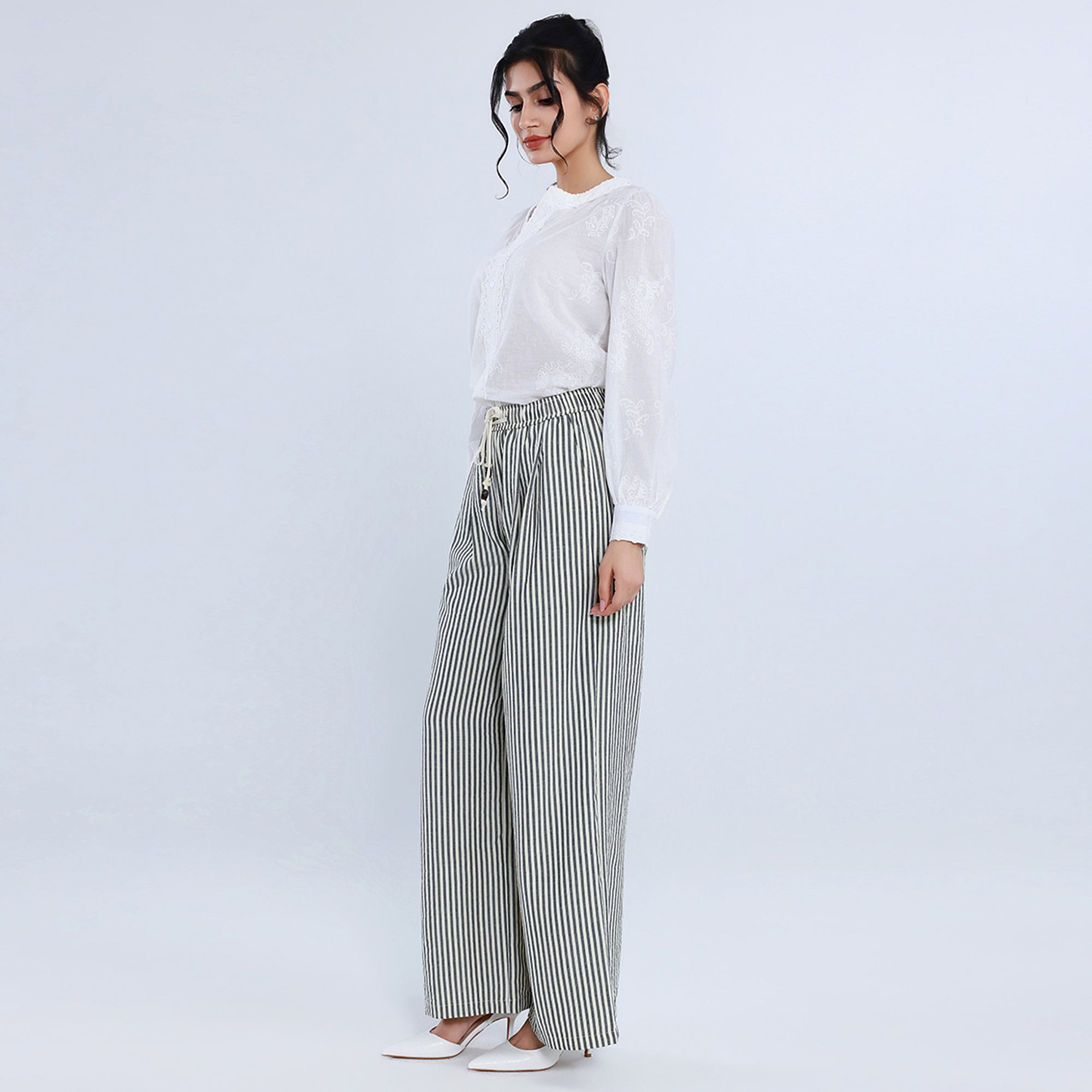 - الخامة قماش بخيوط مصبوغة يضمن ألوانًا ثابتة ومظهرًا أنيقًا مخطط قطن