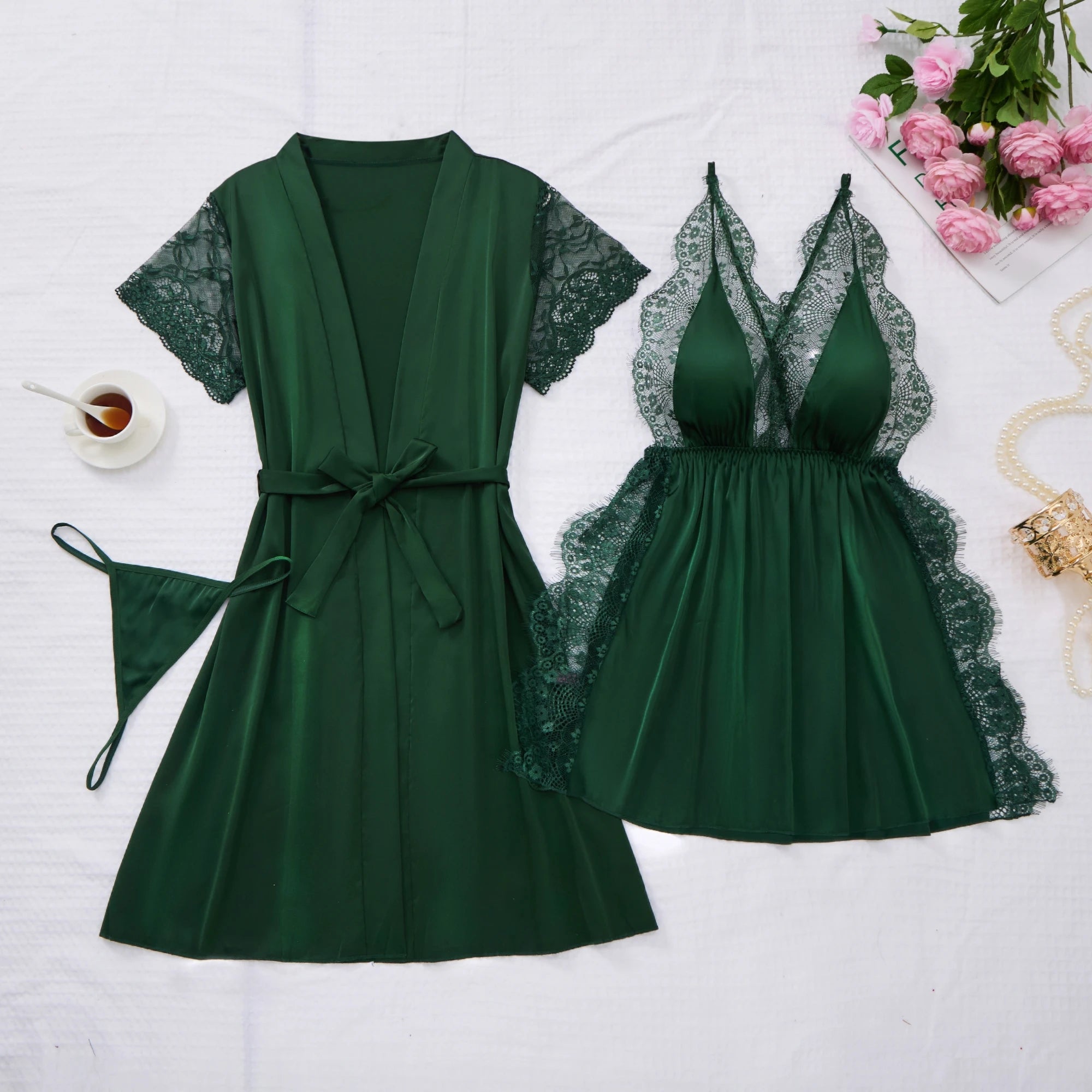 تفاصيل المنتج طول الجزء السفلي: 30% طول الكم: الفستان:بدون أكمام;الروب:أكمام قصيرة شكل الرقبة: رقبة شكل V الجزء العلوى: عادي نوع الأكمام: بأكمام الخامة: حرير صناعي خامات إضافية: 93%بوليستر/7%سباندكس