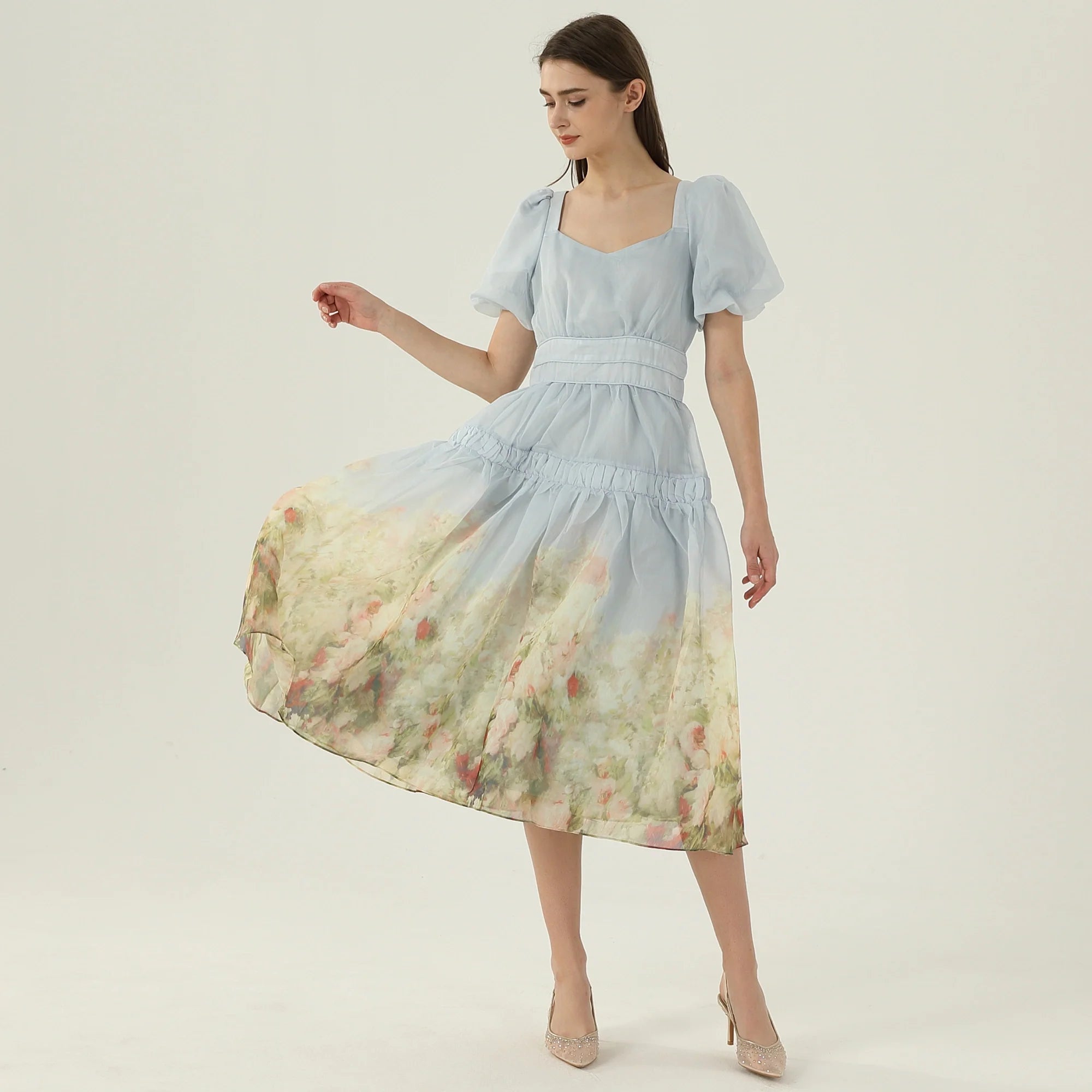 فستان عصري مزين بنمط الزهور للنساء