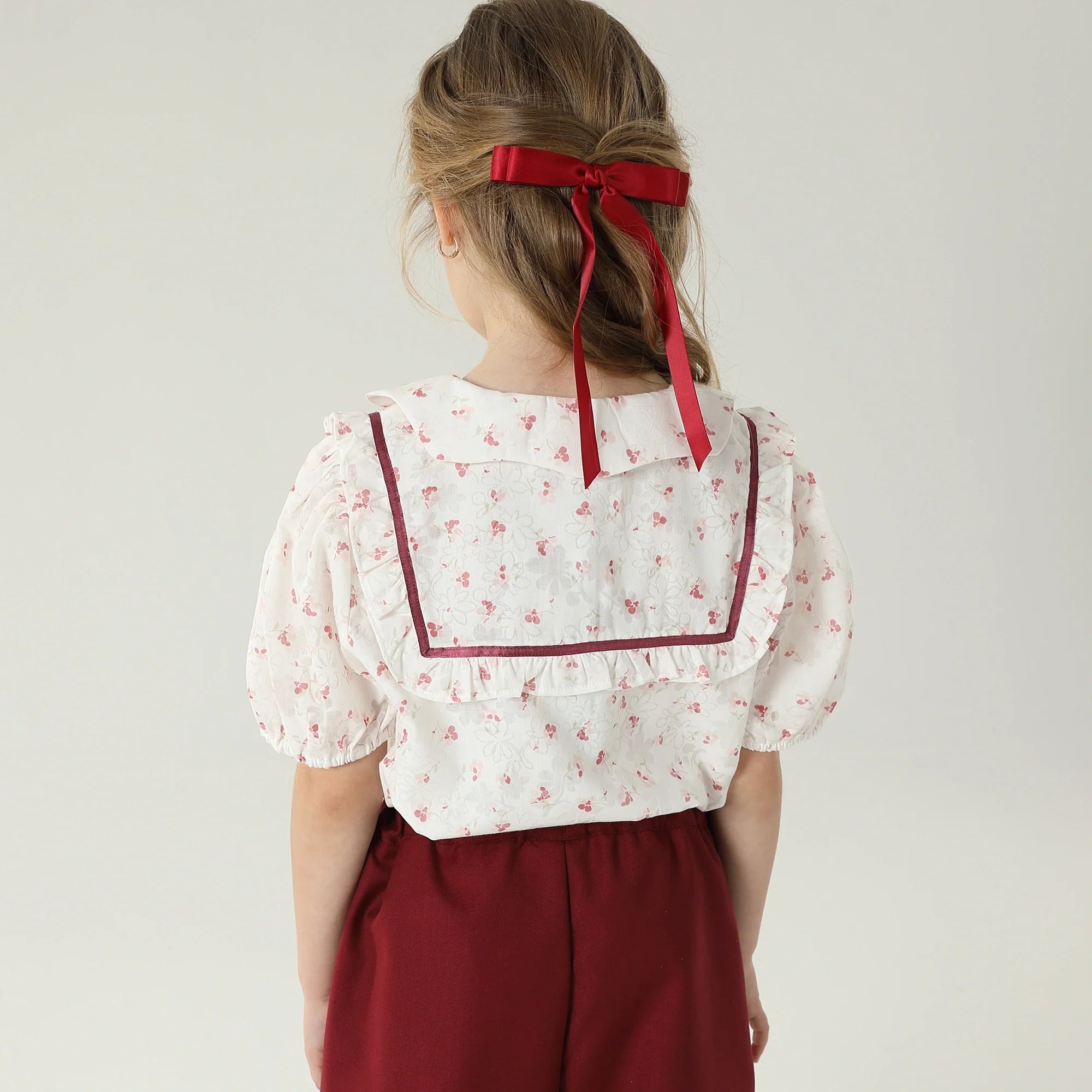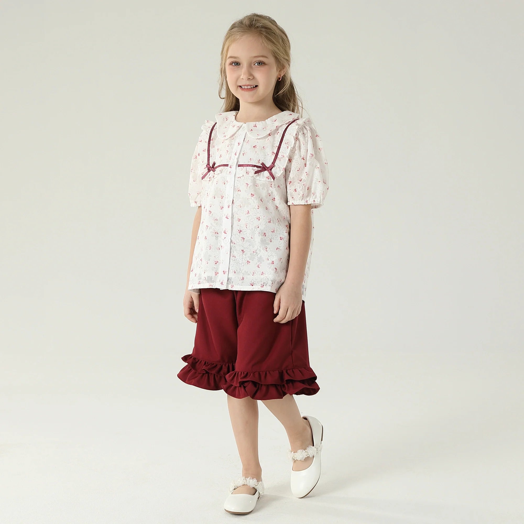 تفاصيل المنتج الجزء السفلي: الطول من الأعلى للأسفل: طول الكم: كم قصير شكل الرقبة: بياقة الجزء العلوي: عصري نوع الكم: أكمام منفوخة النمط: مزين بنمط الزهور الخامة: قطن-بوليستر مواد إضافية:...