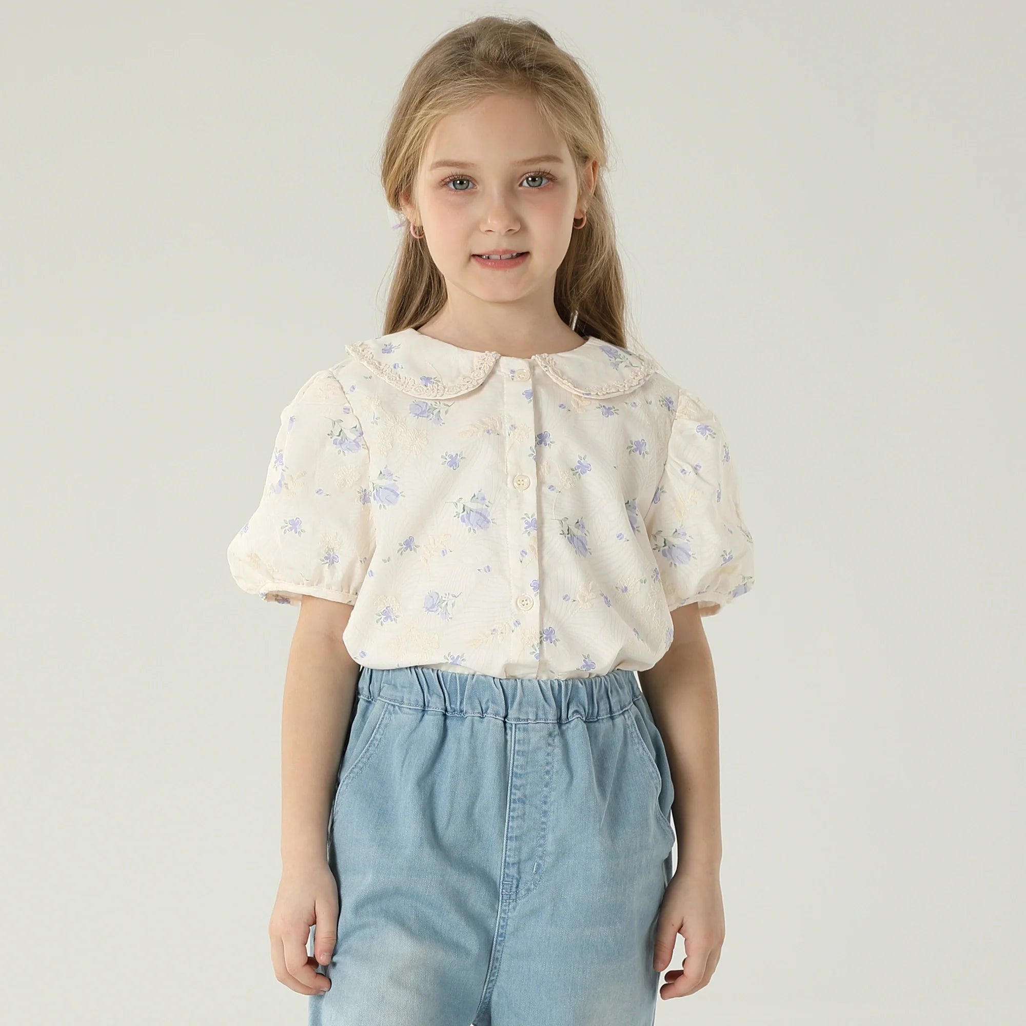 قميص مزين بنمط الزهور للبنات