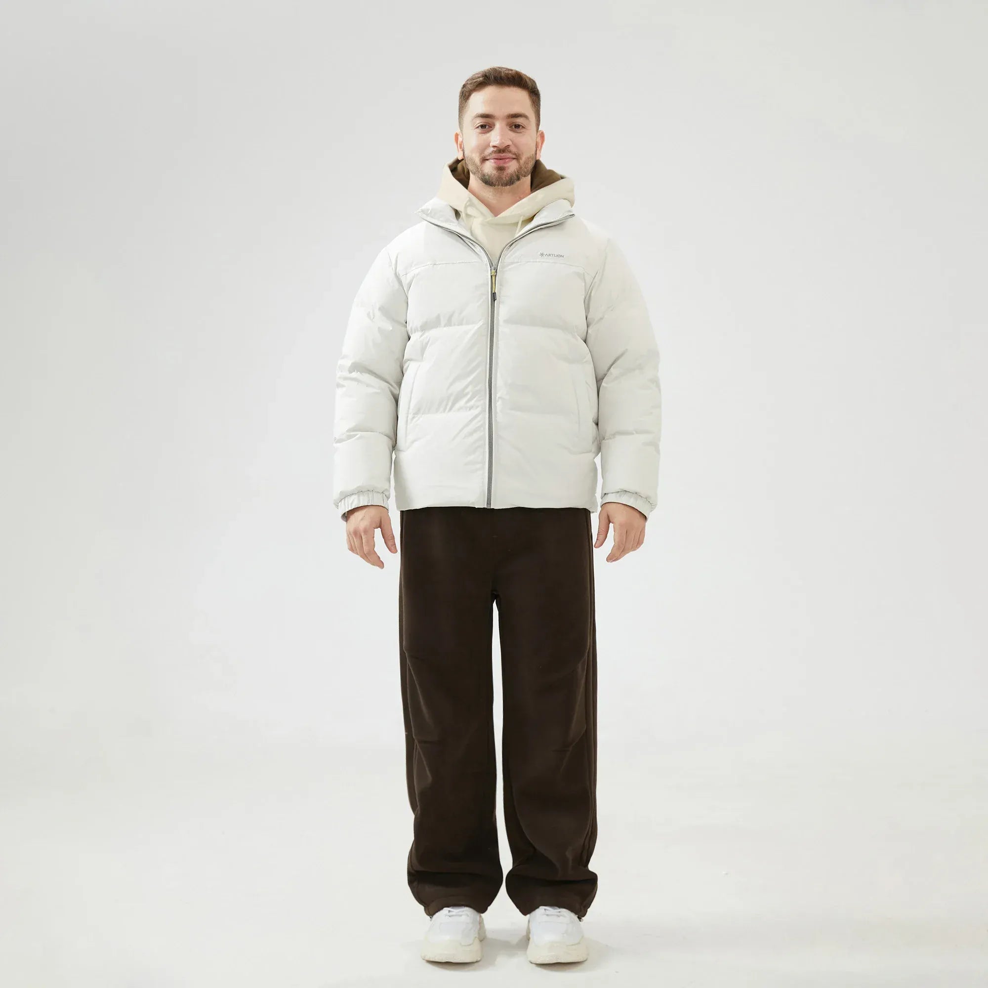 Off White Printed Loose Sleeve Jacket with Stand Collar for Men Image