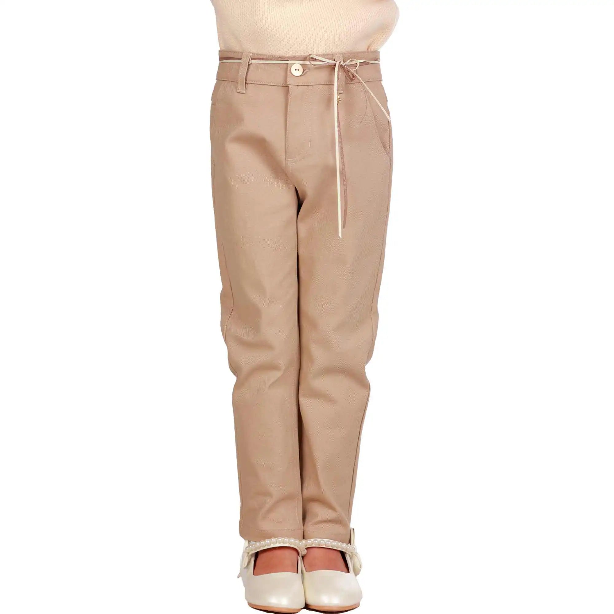 تم تصميم بنطالنا الأنيق الضيق للفتيات ليكون أنيقًا ومريحًا في موسم الخريف/الشتاء. بفضل قصته الأنيقة والنمط الكلاسيكي البسيط، فهو مثالي للارتداء تحت السترات الصوفية كبيرة الحجم أو مع القمصان العصرية. مصنوع من قطن مائل منسوج مطاطي، يوفر هذا البنطال المرونة دون التضحية بالأناقة. كجزء من مجموعة الخريف الجديدة، فهو خيار مثالي لأي فتاة من عشاق الموضة تبحث عن إطلالة أنيقة هذا الموسم.التلبيس: سكيني ضيق