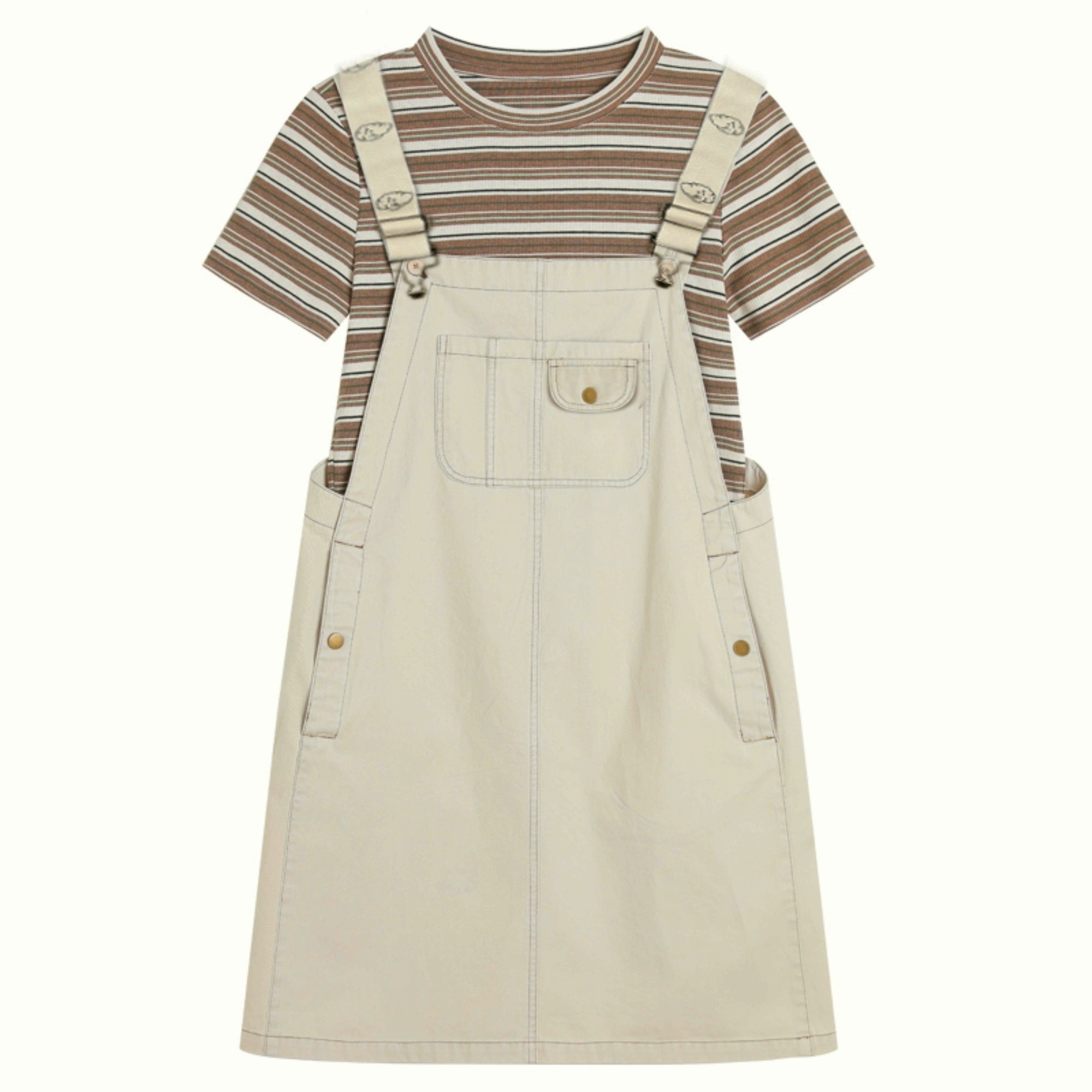 مواصفات المنتج الجزء السفلي: ساق مستقيمة طول الجزء السفلي: 50% طول الكم: كم قصير شكل الرقبة: التيشيرت:دائري,الفستان:بدون ياقه الجزء العلوي: التيشيرت:ضيق,الفستان:عادي نوع الكم: التيشيرت:بأكمام,الفستان:بدون أكمام النمط: مخطط الخامة: الفستان:نسيج قطني...